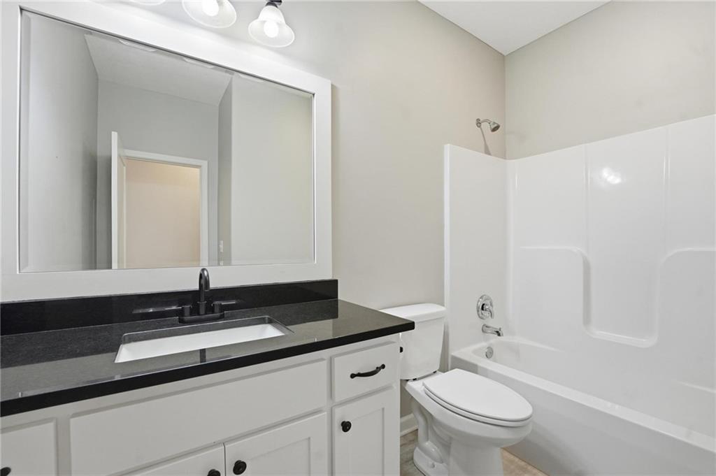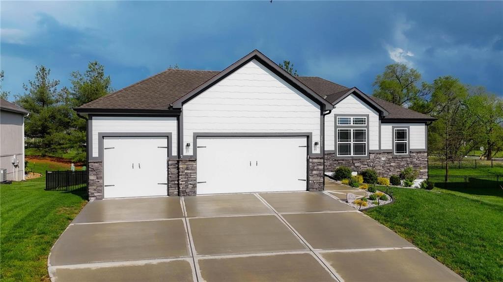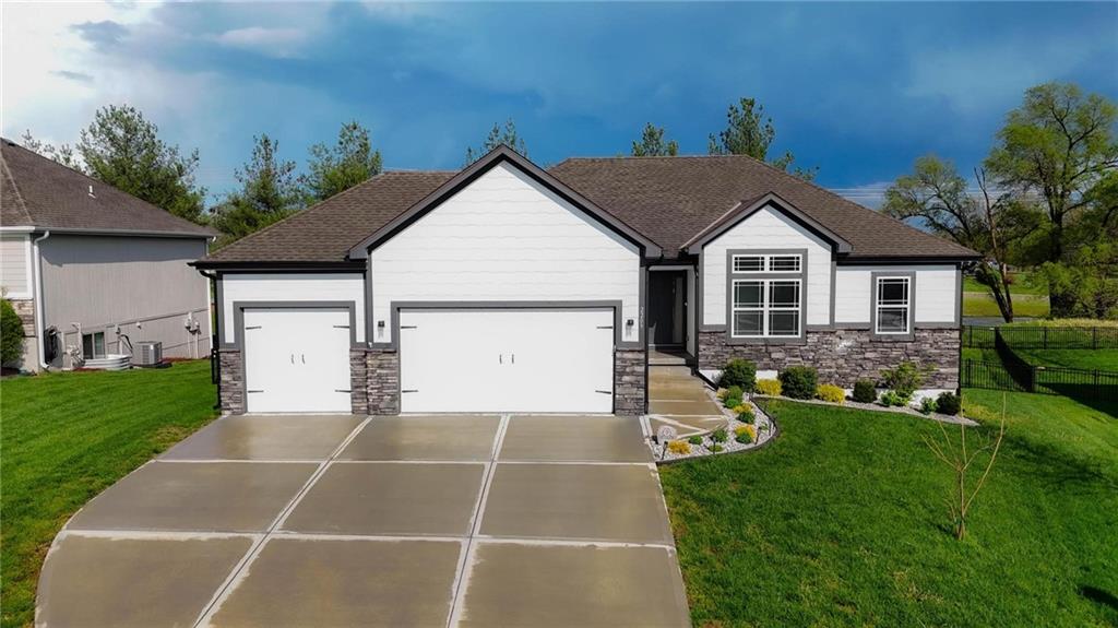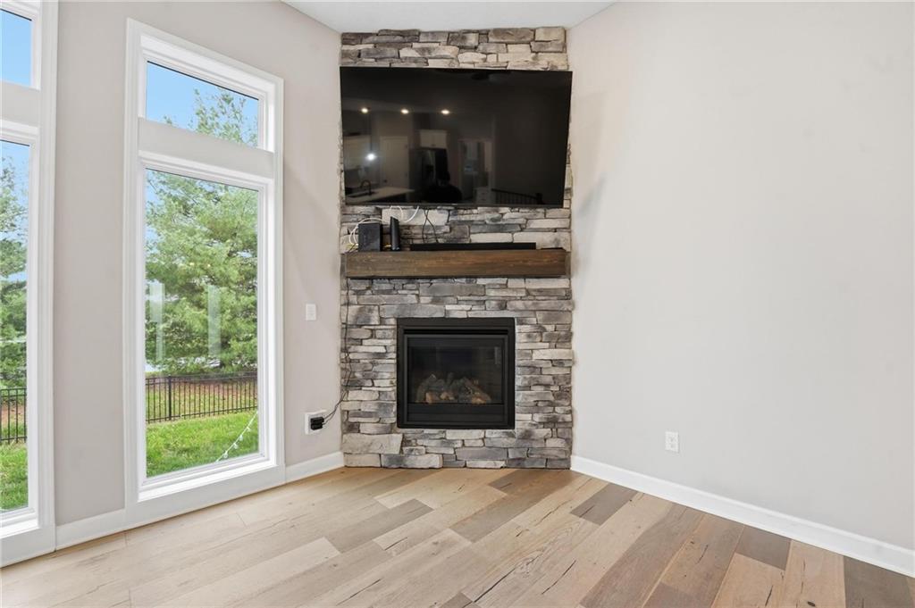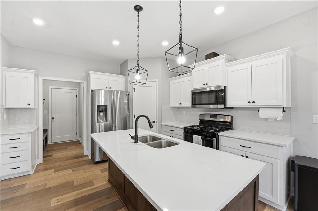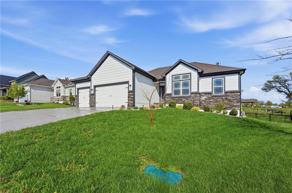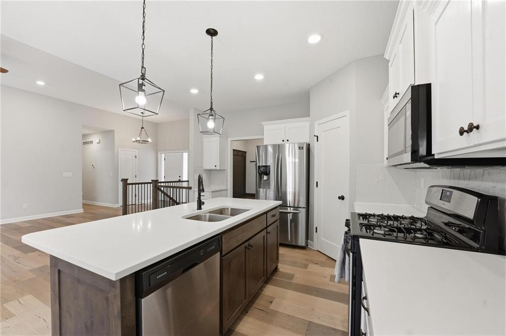 As you walk in, you are greeted by an open layout filled with natural light and clean, modern finishes. The living room centers around a stone fireplace and flows seamlessly into the kitchen with granite counters, an island, and pantry, giving you a space that works just as well for everyday living as it does for hosting.