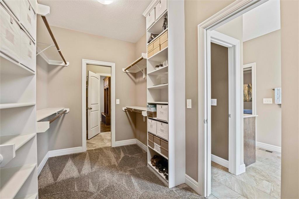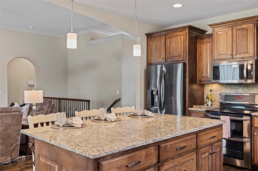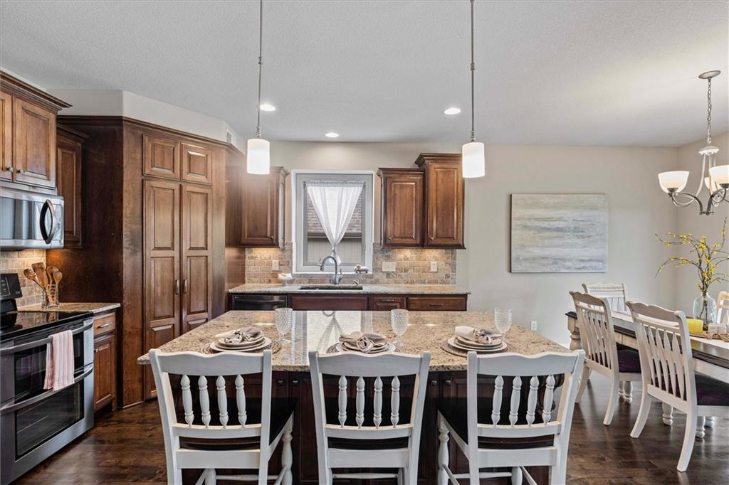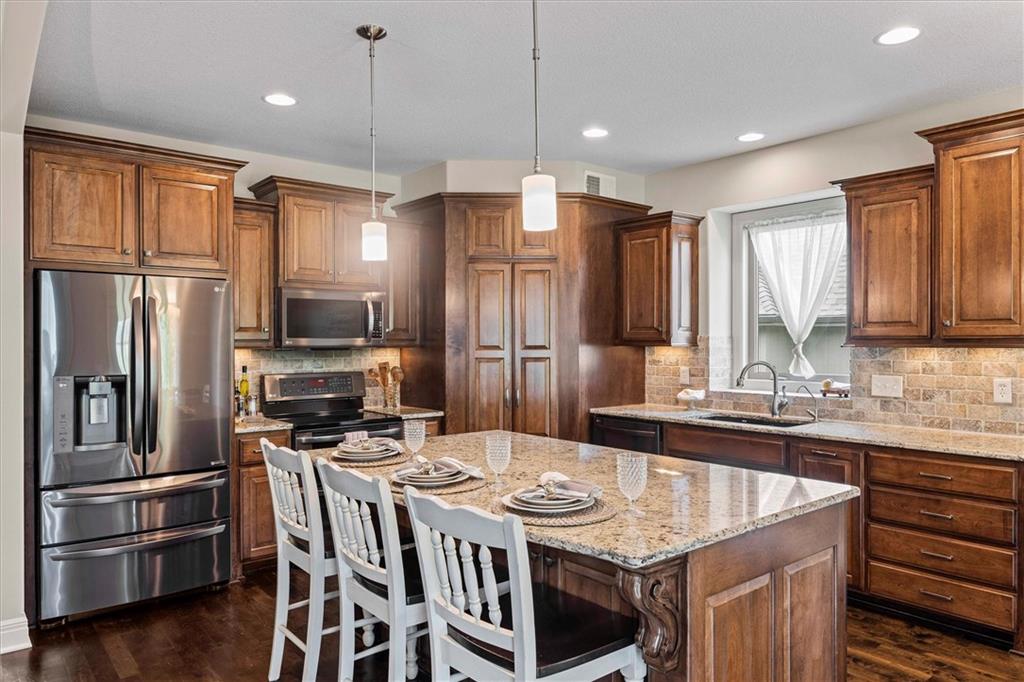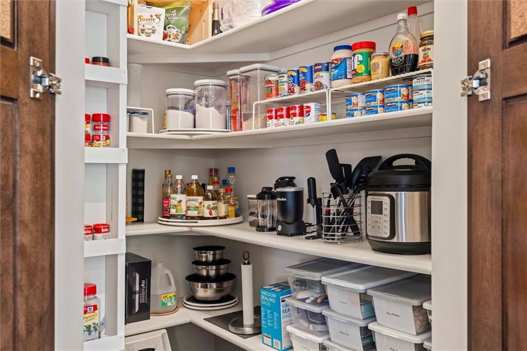- Interior Features Custom Cabinets, Kitchen Island, Pantry, Stained Cabinets, Walk-In Closet(s)
