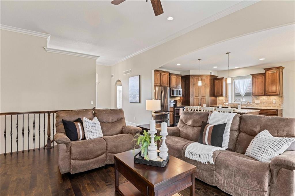 Opportunity is KNOCKING! Well loved & well-maintained Reverse 1.5 Story home in Pembrooke Estates! You don’t want to miss this home that gives you the quality finishes you want, great location AND in a neighborhood where new Reverse 1.5 Story homes are selling in the $800k’s. This home is priced to sell. New roof in 2025. The hardwoods have just been refinished and the interior has just been painted, nothing for you to do but move right in! This well thought out floorplan has great flow and makes daily living & entertaining easy. You’ll love the kitchen with the large island, walk-in pantry and plenty of room for a large table. The great room with gas fireplace can seat a crowd. The primary bedroom has an ensuite bath with jetted tub, tiled shower, water closet AND a huge walk-in closet with access to the laundry room. The covered deck is the perfect spot for your morning coffee or adult beverage at the end of the day while the extended patio gives you grilling space and a firepit. An outdoor “closet” is the perfect place to store your lawn equipment and outdoor furniture in the off season. The finished lower level is the perfect entertainment spot with room for a BIG screen tv & comfy furniture, bar with keg tap and the pool table stays! This home has so much to offer, you need to see it for yourself!