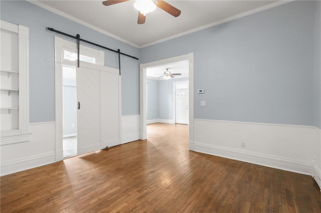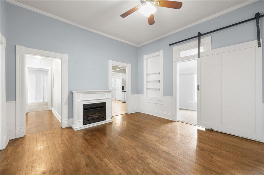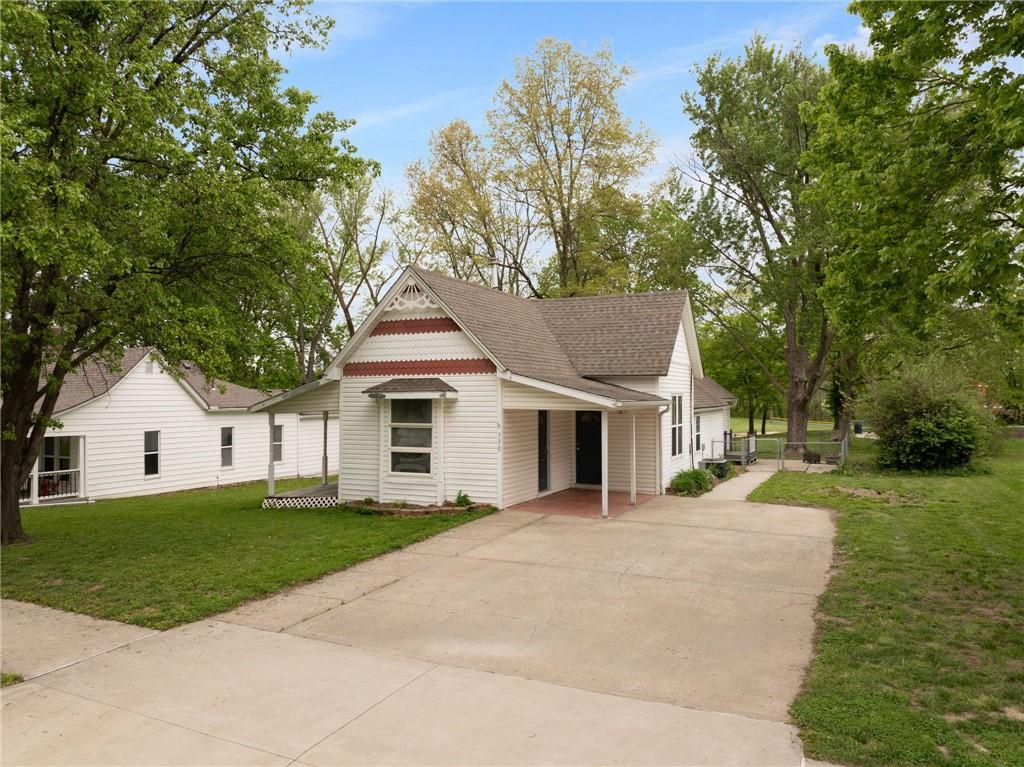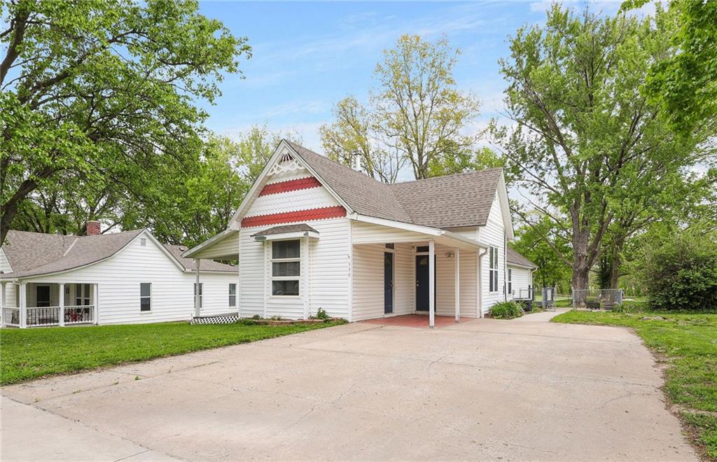 Step into timeless character with this beautifully appointed Victorian-style ranch home, ideally situated just off the main street of downtown Smithville. Two covered porches with multiple entrance points offer flexibility and curb appeal that is hard to miss. Inside, tall ceilings and rich hardwood floors set the tone as natural light floods every corner of the home. Two bedrooms anchor the front of the house, while the spacious dining room — complete with a cozy fireplace and newly added built-in shelves — creates an inviting space for entertaining. A stylish new barn door conceals a bonus room ideal for a home office, playroom, or gaming retreat. The kitchen impresses with custom cabinetry, a new sink, and a refrigerator that stays. Just around the corner, a versatile nook is ready to serve as a drop zone, pantry, or with a little vision — a charming butler’s pantry. Down the hall, you’ll find the third bedroom and a guest bathroom with conveniently located laundry. The private primary suite sits at the rear of the home and features double closets and an ensuite with a walk-in shower. Step outside to a fully fenced backyard just steps from a park, softball and baseball fields, and the ADA Accessible Smithville Heritage Park Trail. Mechanical updates include a 3-year-old HVAC and 4-year-old water heater — providing peace of mind from day one. All of this within moments of local coffee shops, outdoor dining, and the vibrant energy of downtown Smithville. Whether you’re a first-time buyer, savvy investor, or ready to downsize without sacrificing style — this one is not to be missed.