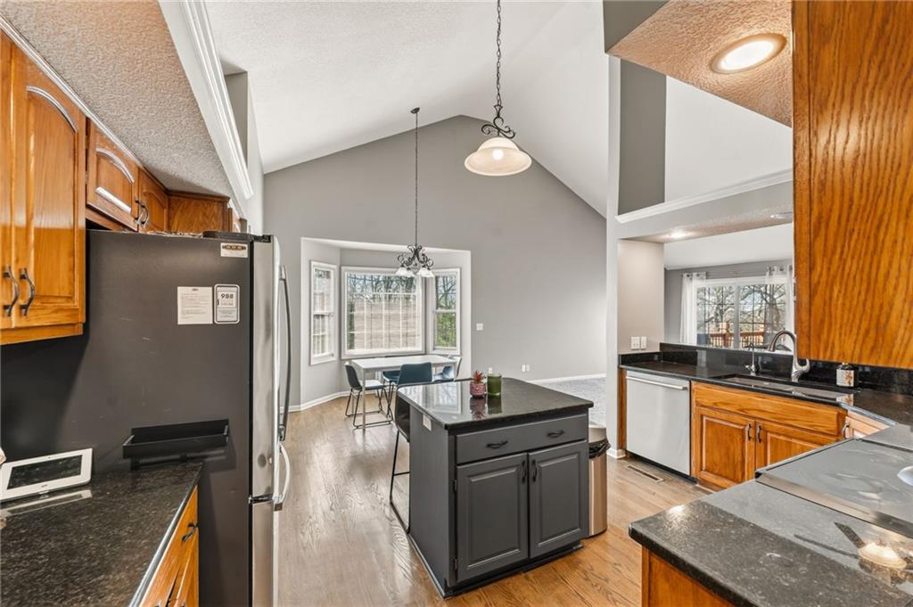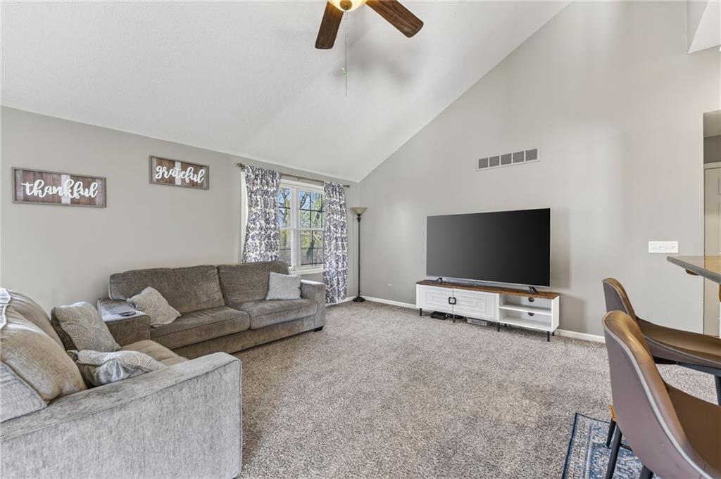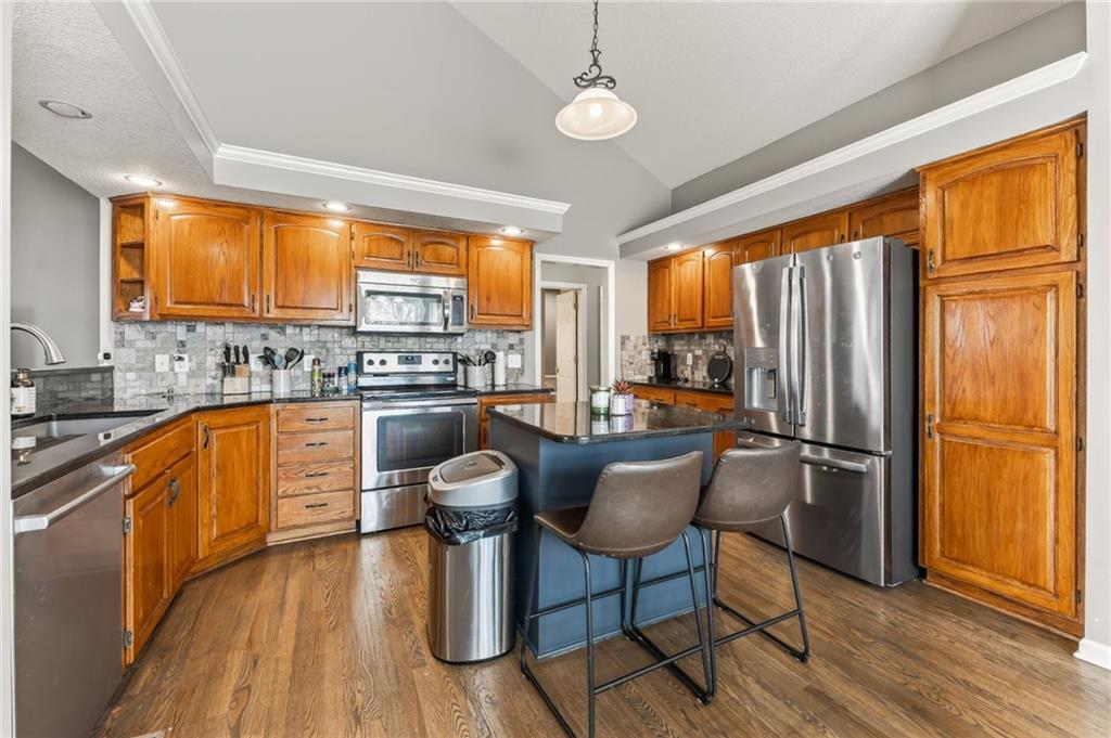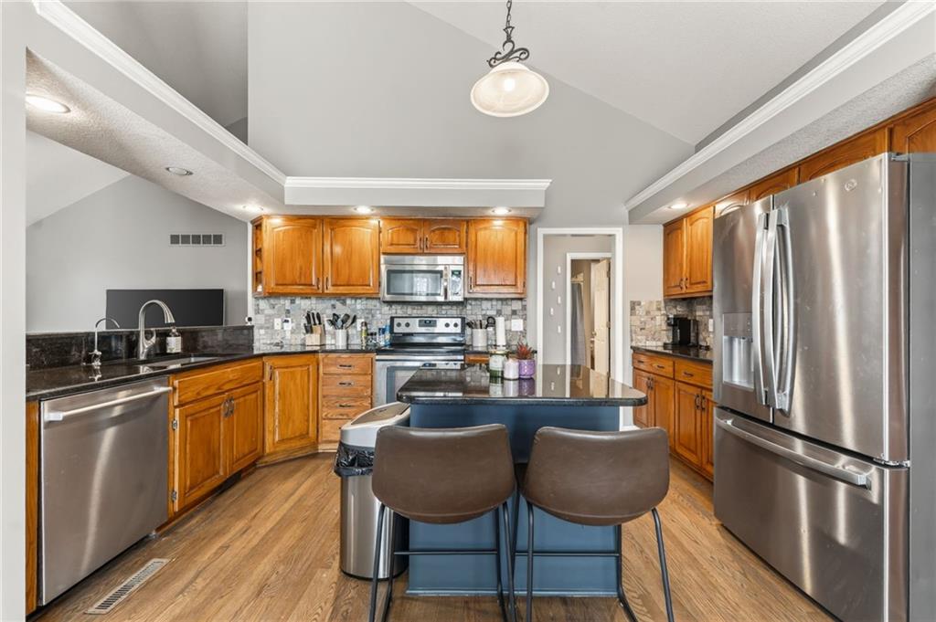 - Interior Features Ceiling Fan(s), Custom Cabinets, Kitchen Island, Stained Cabinets, Vaulted Ceiling(s), Walk-In Closet(s)