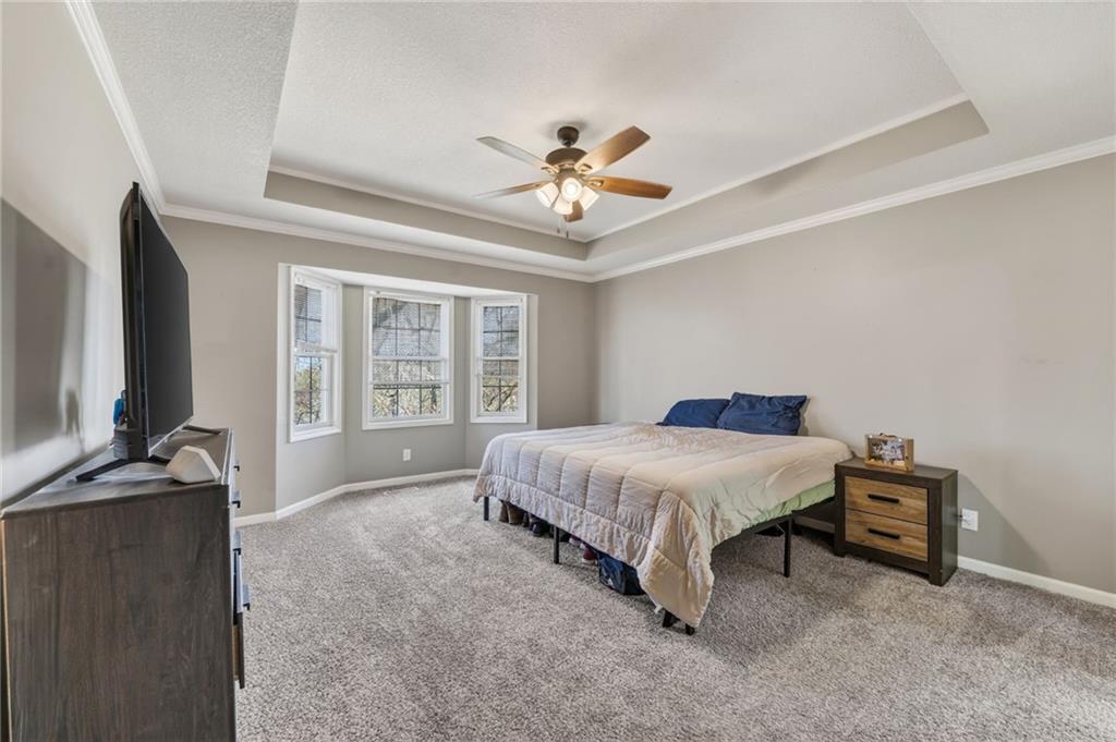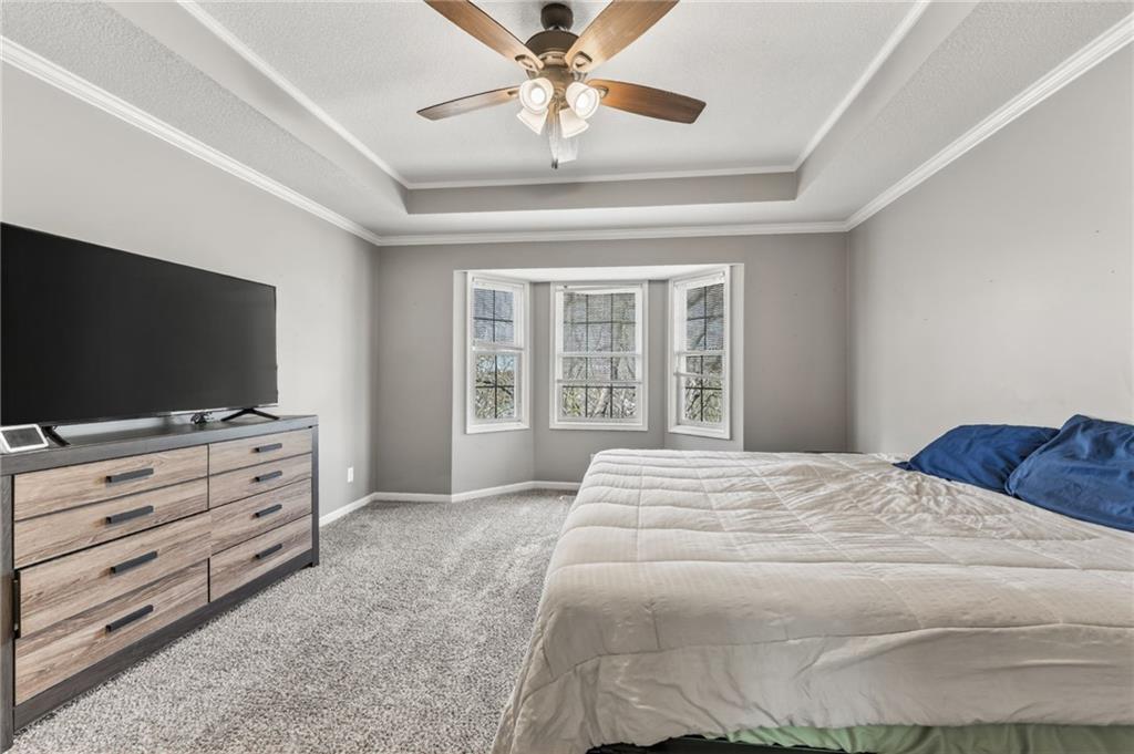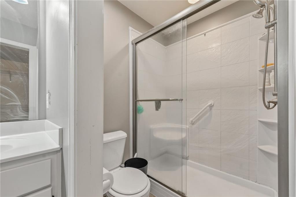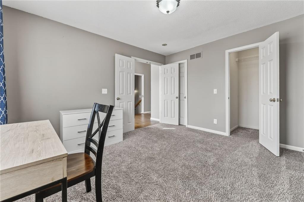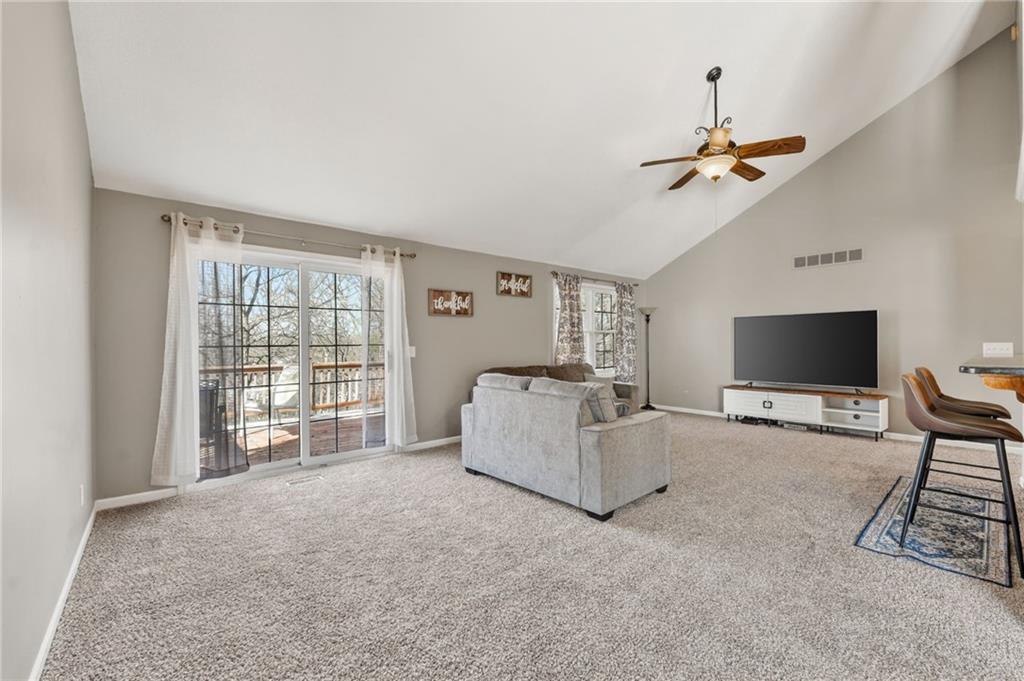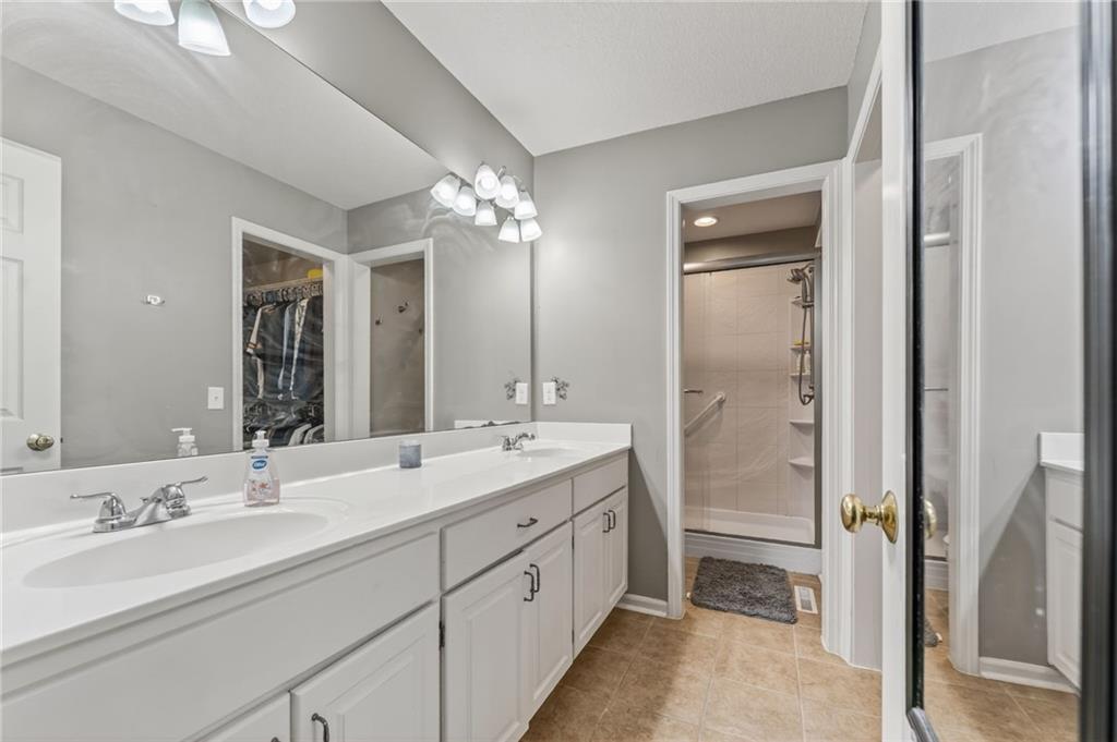 The main-level primary suite offers a relaxing retreat with vaulted ceilings, a spacious walk-in closet, and a large en suite bathroom complete with a double vanity. Two additional generously sized bedrooms —one on the main level and one in the lower level—both include large closets for ample storage.