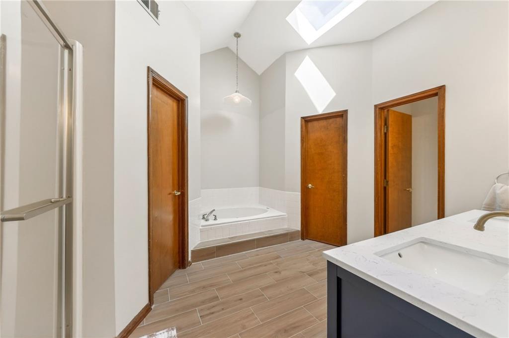 Located at the end of a cul-de-sac with green space behind and no rear neighbors, this 4-bed, 2.5-bath two-story has a freshly painted interior with new luxury vinyl plank flooring throughout. The main level features two fireplaces, a double oven kitchen, and main floor laundry. All four bedrooms are upstairs with a deck out back overlooking the green space.