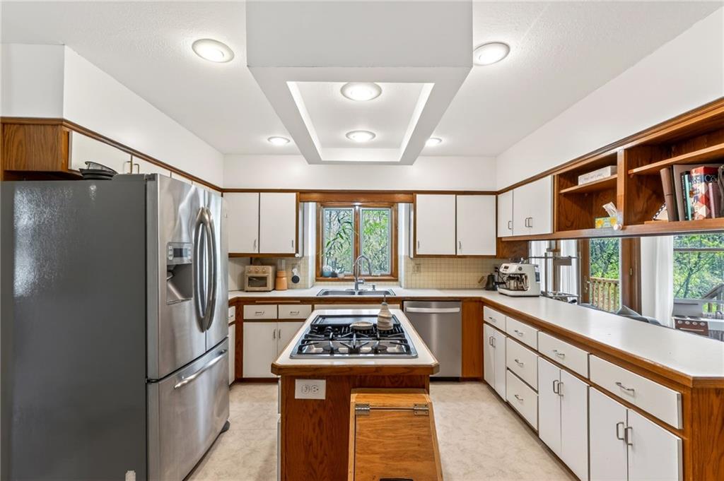 - Appliances Cooktop, Dishwasher, Disposal, Double Oven, Freezer, Microwave, Refrigerator, Stainless Steel Appliance(s)