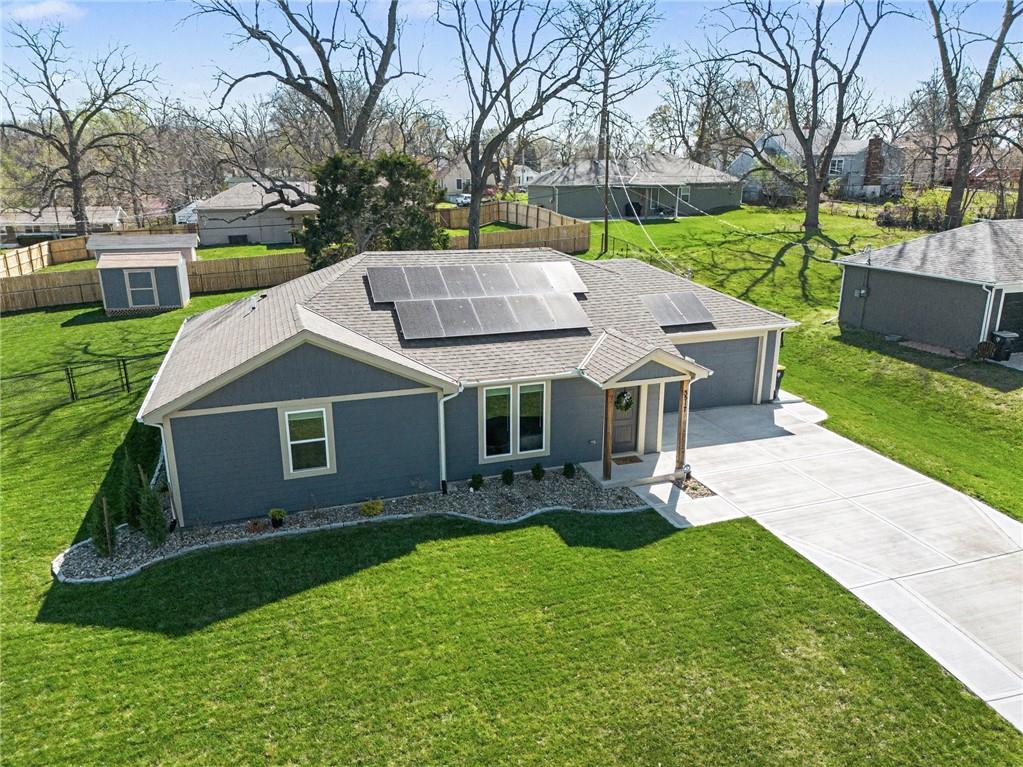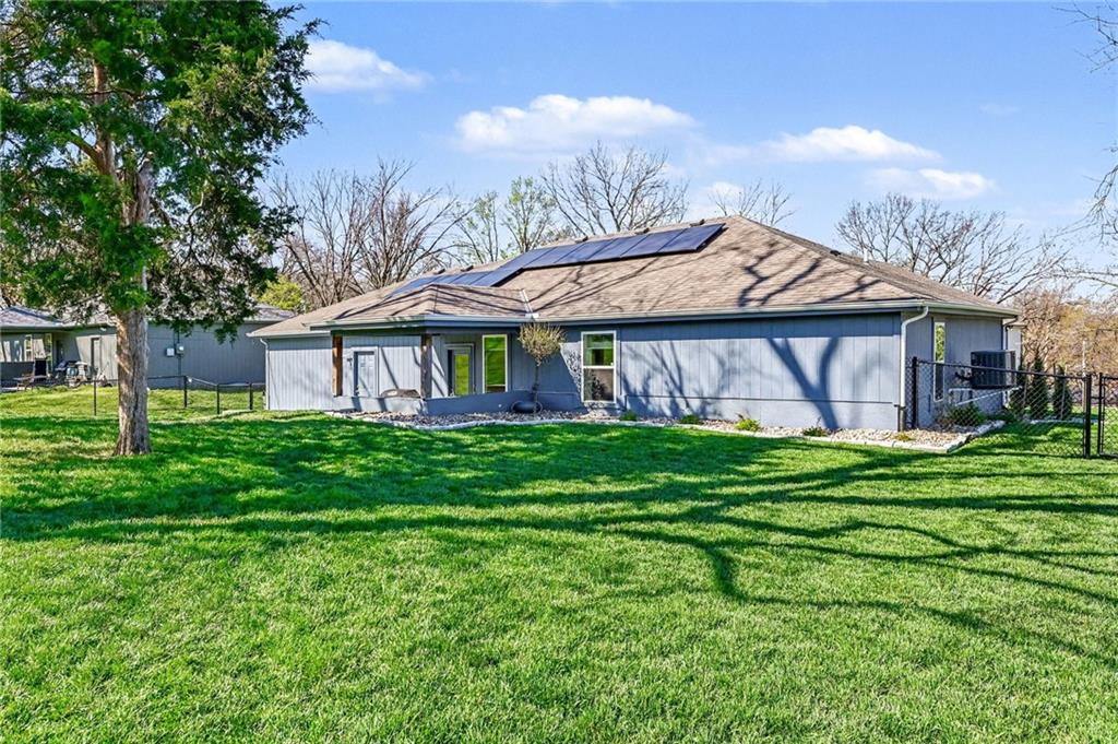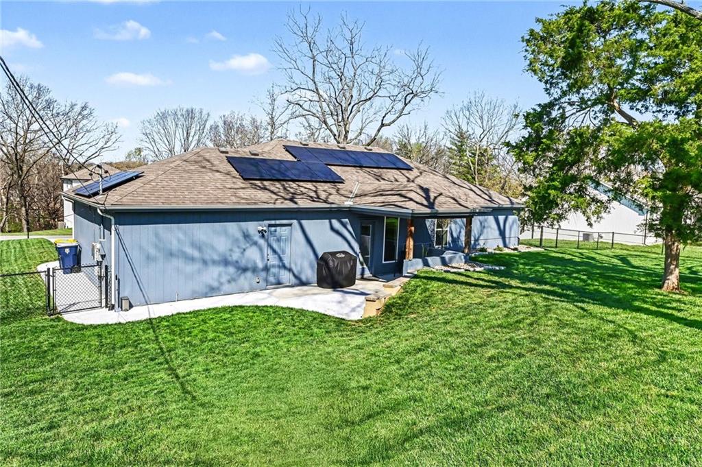 Additional highlights include a two car garage and solar panels for added efficiency. Step outside to a large, fully fenced backyard with mature trees and a storage shed, offering plenty of space to relax or entertain.