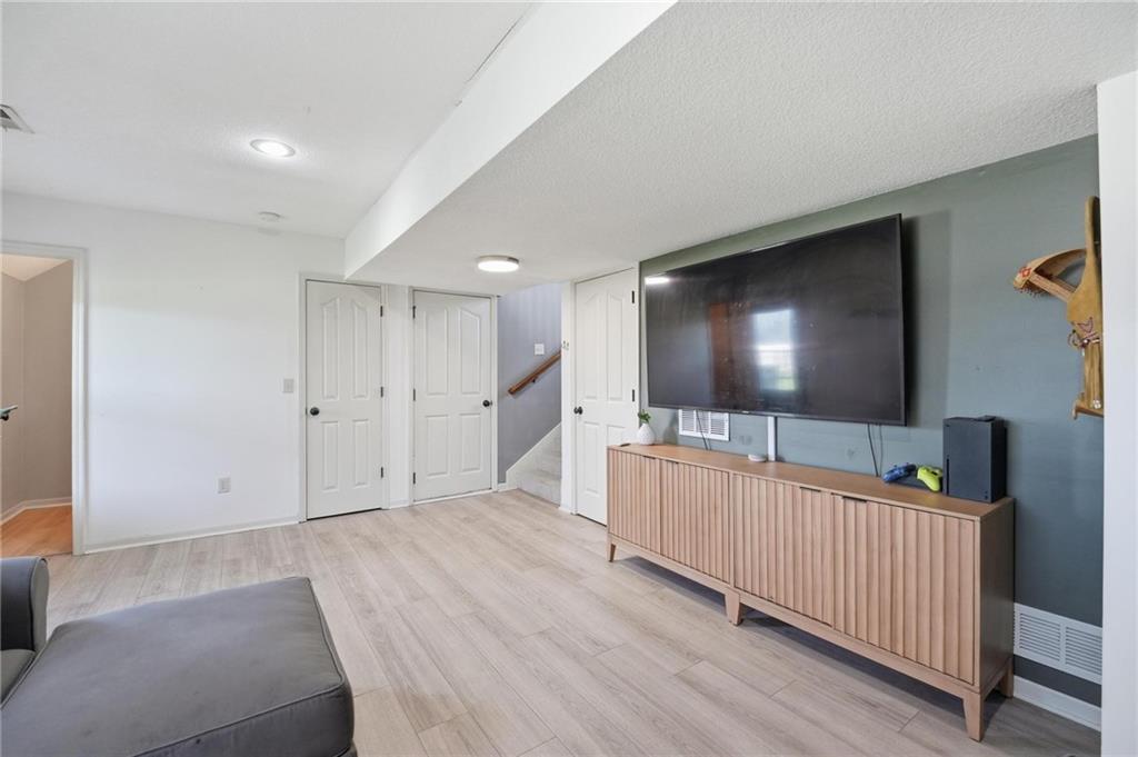 Welcome to Genesis Place at Green Hills! This front to back split welcomes you into a large living room with vaulted ceilings, beautiful windows and a refinished fireplace. Upstairs the renovated kitchen takes center stage with quartz countertops and painted cabinets, opening into a home filled with newer flooring throughout. This home also offers updated bathrooms and a 3-car garage along with a subbasement perfect for storage, a workout area, or flex space. The spacious primary suite features a large jacuzzi tub, double vanity, and walk-in closet. Out back, the yard truly steals the show with a basketball court, playground, deck, and extended concrete patio complete with a retractable awning—ideal for both relaxing and entertaining. Curb appeal is no problem here with the newly installed flower bed retaining walls in both the front and backyard. Last but certainly not least, a NEW ROOF is coming soon!