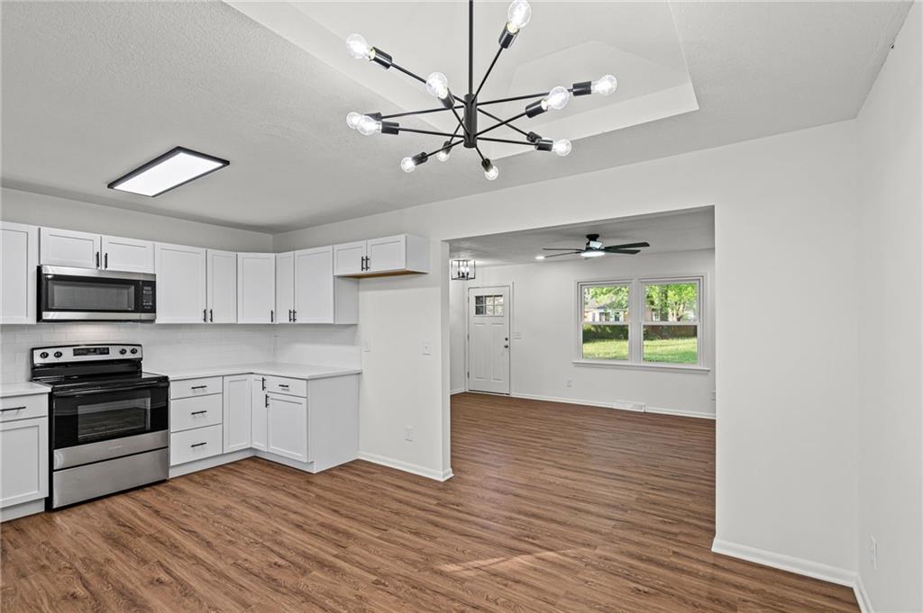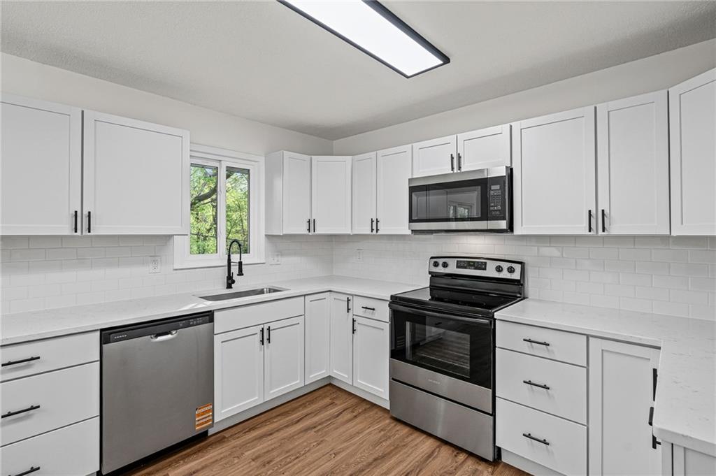 This fully renovated 3-bed, 2-bath Northland split has been rebuilt from the inside out: brand-new kitchen with quartz countertops, white shaker cabinets, subway tile backsplash, and a full stainless appliance package. Both bathrooms are completely new. New LVP floors run through the main living areas.