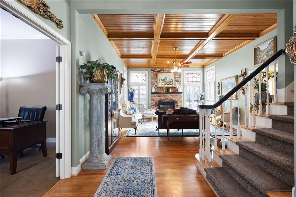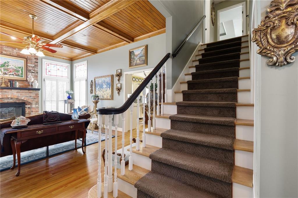 If you want a home that supports your lifestyle and has investment potential, this master-crafted Northland residence is the rare exception! This home offers nearly 4,300sqft of space, starting with a gourmet chef’s kitchen featuring granite countertops, a large island, stainless appliances, and a warming oven for perfect hosting. The main floor flow is natural and unhurried, with high ceilings and a sun-drenched living room anchored by a classic fireplace and custom stained-glass accents. A dedicated office on this level provides the perfect retreat. Upstairs, you will find four large bedrooms, including an oversized primary suite with an expansive walk-in closet, a private skylight, and a heated tile bathroom floor.