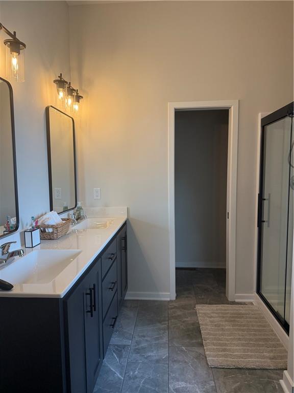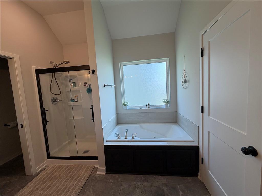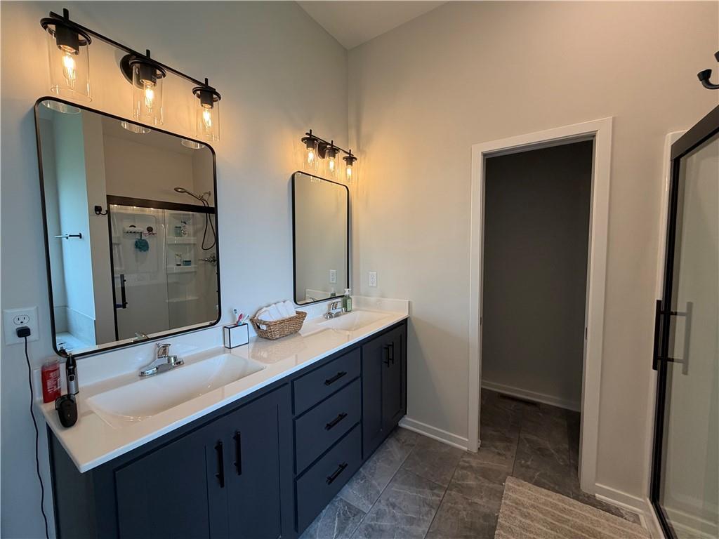 Spacious primary suite with walk-in closet and double vanities