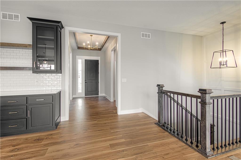 Nestled on a beautiful treed walkout lot, this thoughtfully designed home offers the perfect blend of privacy, comfort, and quality craftsmanship. Enjoy peaceful views from the oversized covered deck, an ideal space for relaxing outdoors or entertaining guests while surrounded by mature trees. Inside, the great room serves as the heart of the home, featuring a striking stone fireplace complemented by built-in cabinetry with floating shelves, creating a warm and inviting atmosphere. The open layout flows seamlessly into the kitchen, which showcases upgraded quartz countertops, an oversized island perfect for gathering, and a spacious walk-in pantry designed for both convenience and style. Throughout the home, you’ll find upgraded trim and decorative accent details, along with numerous tile and finish upgrades that highlight the quality and attention to detail in every space. The walkout lower level provides additional living and entertaining space, complete with a wall wet bar, making it the perfect area for hosting friends, movie nights, or game-day gatherings. Additional highlights include an oversized garage and countless upgraded finishes throughout!