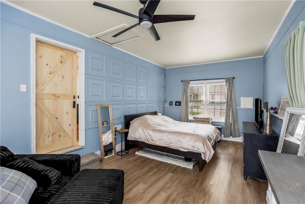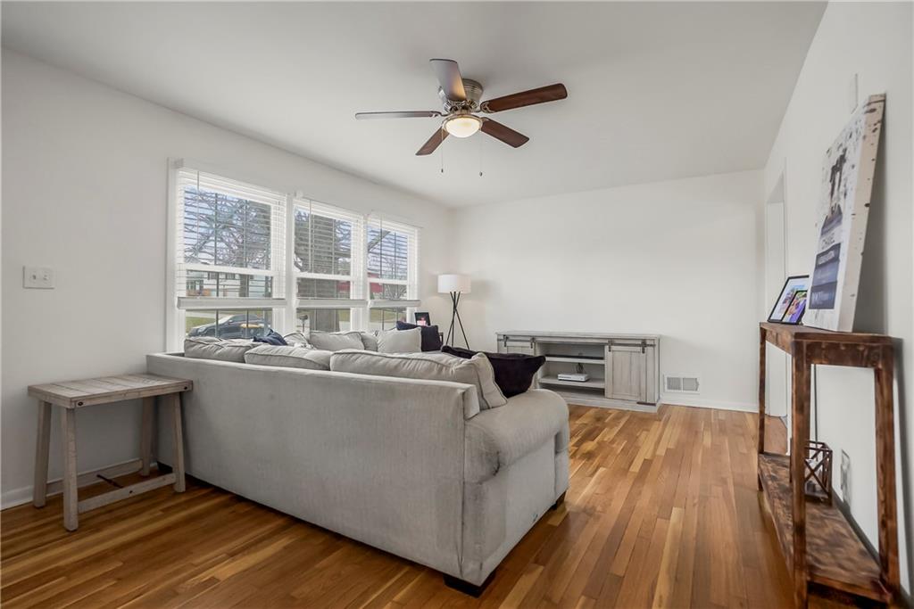 Must See Stylish Ranch Home In the Heart of it All! Beautifully Maintained! This move-in-ready home features beautiful gleaming hardwood floors with large floor to ceiling windows pumping natural light throughout the home! The updated kitchen offers white shaker cabinetry, quartz countertops, stainless steel appliances, and a subway tile backsplash. Enjoy a spacious living room and a bright eat-in dining area overlooking the wrap deck and green space. The unfinished basement offers great storage or future finishing potential. Step outside to a large backyard with an elevated wrap deck, perfect for relaxing or entertaining guests. So much to enjoy with main components of the home being in newer condition roof, HVAC, plumbing, electrical, etc. move in and enjoy!