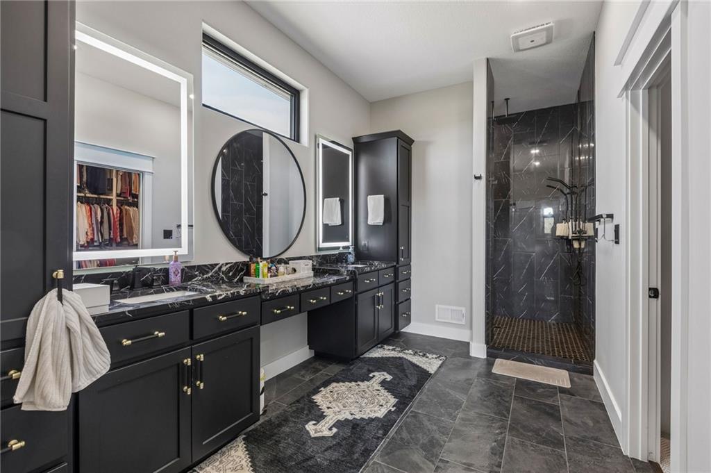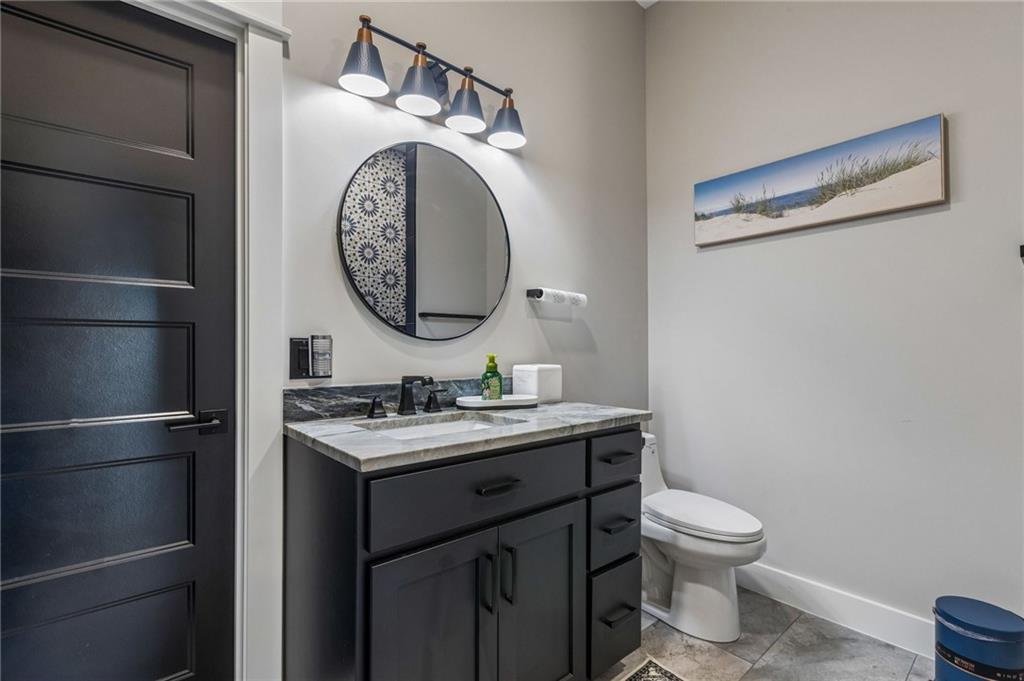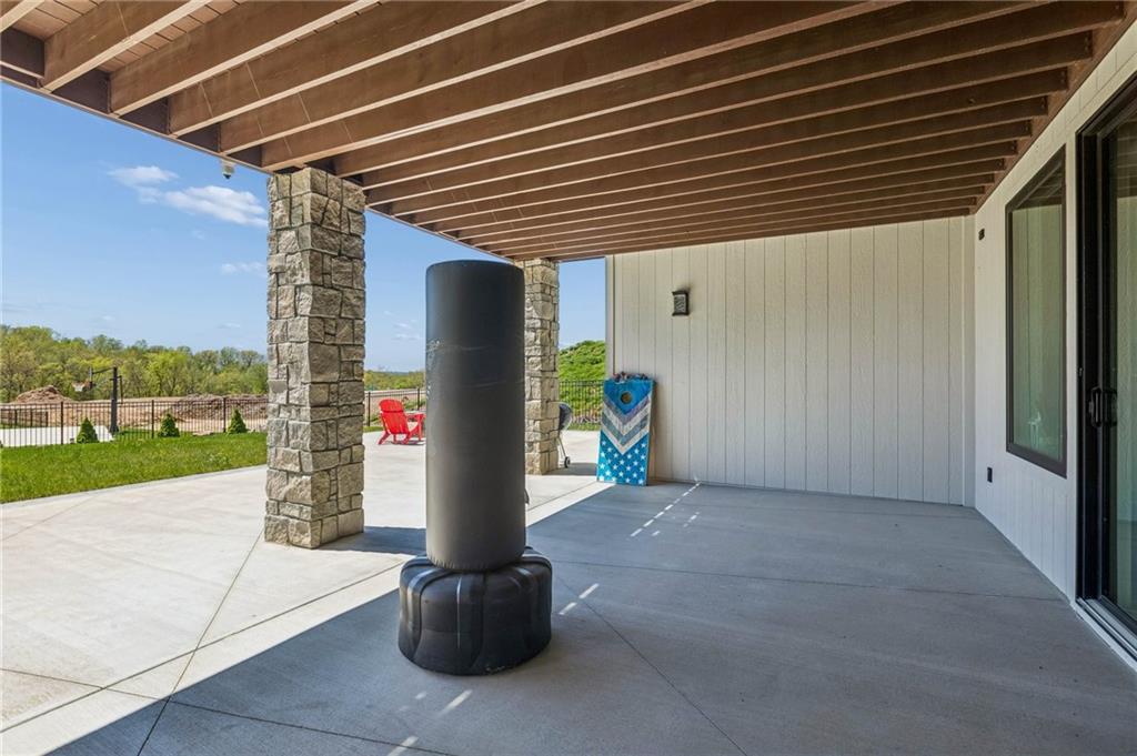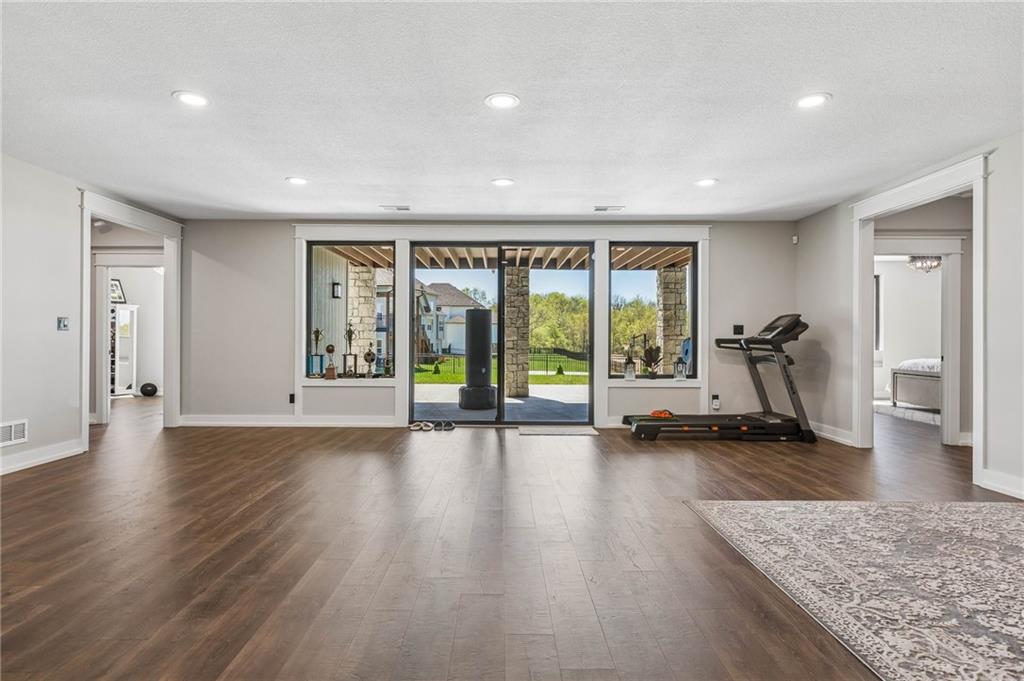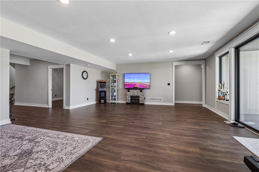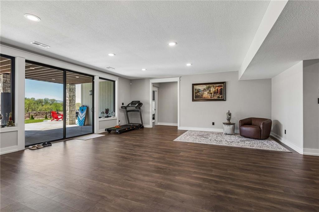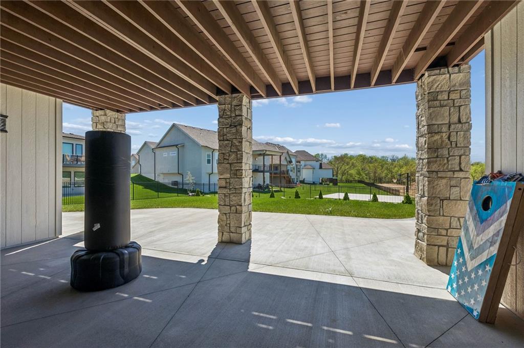 Located in the Highly Desirable Montebella Community. Only Minutes from both Downtown and MCI International Airport. This Luxury Home is a masterpiece of Modern Design! Experience a Bold first impression by entering through either the His-and-Her Garages or the Oversized Double Front Door. Be Welcomed by a Sleek and Stylish Kitchen featuring black ZLINE appliances including a double oven and a 8-burner gas stove. These match perfectly with the dramatic Quartz Countertops and Backsplash, combining form and factor for an elevated yet practical Home Cooking experience. Keep all your ingredients in the Custom pantry with a second full-sized refrigerator. Passing the Beautifully Designed Entertainment Wall with a linear fireplace, step into a Lavish Master Bedroom and Bathroom. Touting a One-of-a-kind Trim Wall, a Vanity with Individual Cabinet Towers and Personal Beauty Station, a Spacious Shower featuring a Rain Head and bench, and a HUGE Closet with 3rd tier mechanically assisted pull down rails, This Master leaves nothing to be desired. All Black Windows pull the Contemporary Aesthetic through the whole Home as you find yourself in the Lower Level. Two Bedrooms and 1.5 Bathrooms accompany a more versatile space for an office or exercise room. Spend time with family and guests in the rec area large enough for a full on Entertainment zone with a Home Theater and a Pool Table. Besides Looking Great outside, The Home offers a fenced in yard, no unusable space, and a gas fire pit. This Home truly is Better-Than-New with all the Bonus features like Epoxy Garage Floors, Fenced in yard, Additional Landscaping, Garage Heaters, and Window Treatments already in place. Here you can, Entertain in a Home your guests will remember, and Make Memories with your Family you will Cherish for a lifetime.