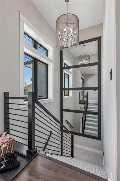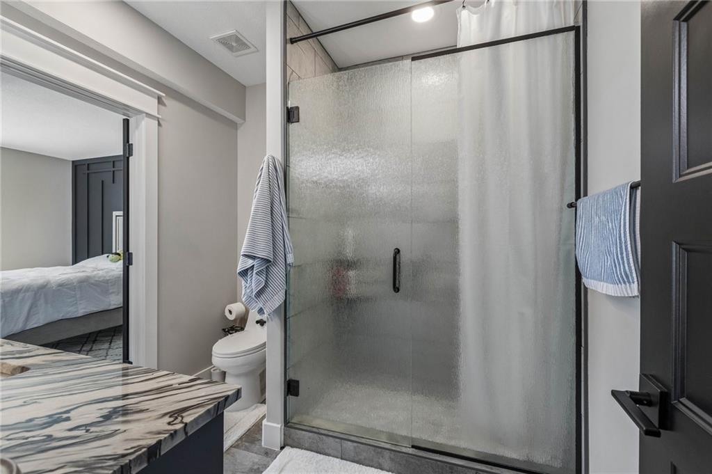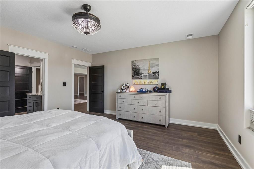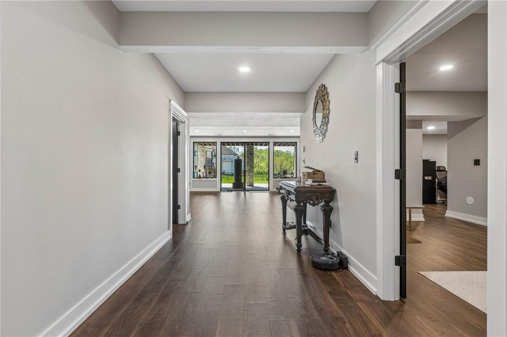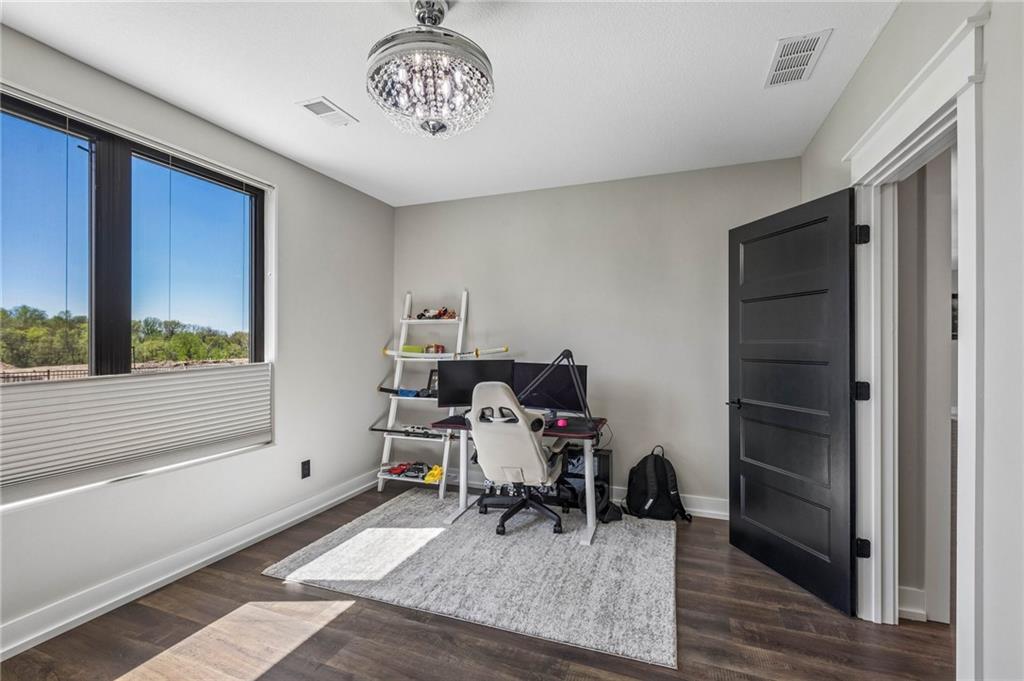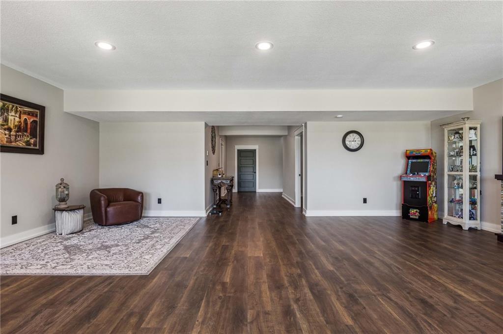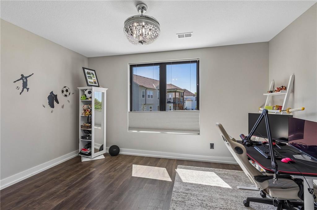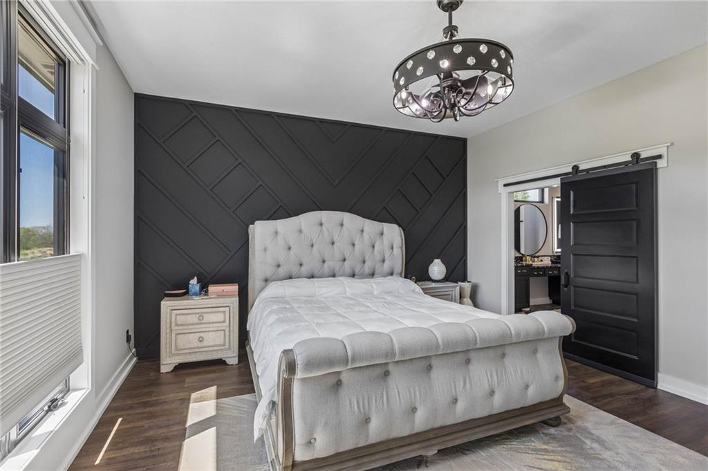 Located in the Highly Desirable Montebella Community. Only Minutes from both Downtown and MCI International Airport. This Luxury Home is a masterpiece of Modern Design! Experience a Bold first impression by entering through either the His-and-Her Garages or the Oversized Double Front Door. Be Welcomed by a Sleek and Stylish Kitchen featuring black ZLINE appliances including a double oven and a 8-burner gas stove. These match perfectly with the dramatic Quartz Countertops and Backsplash, combining form and factor for an elevated yet practical Home Cooking experience. Keep all your ingredients in the Custom pantry with a second full-sized refrigerator. Passing the Beautifully Designed Entertainment Wall with a linear fireplace, step into a Lavish Master Bedroom and Bathroom. Touting a One-of-a-kind Trim Wall, a Vanity with Individual Cabinet Towers and Personal Beauty Station, a Spacious Shower featuring a Rain Head and bench, and a HUGE Closet with 3rd tier mechanically assisted pull down rails, This Master leaves nothing to be desired. All Black Windows pull the Contemporary Aesthetic through the whole Home as you find yourself in the Lower Level. Two Bedrooms and 1.5 Bathrooms accompany a more versatile space for an office or exercise room. Spend time with family and guests in the rec area large enough for a full on Entertainment zone with a Home Theater and a Pool Table. Besides Looking Great outside, The Home offers a fenced in yard, no unusable space, and a gas fire pit. This Home truly is Better-Than-New with all the Bonus features like Epoxy Garage Floors, Fenced in yard, Additional Landscaping, Garage Heaters, and Window Treatments already in place. Here you can, Entertain in a Home your guests will remember, and Make Memories with your Family you will Cherish for a lifetime.