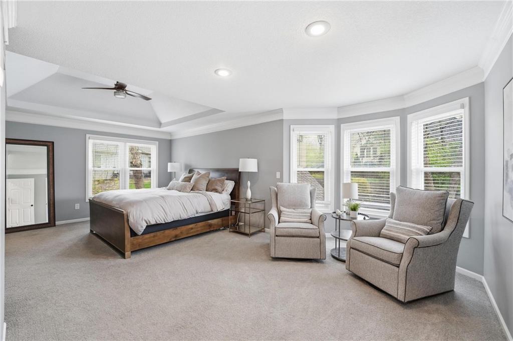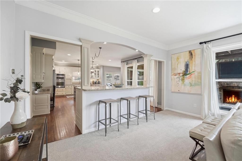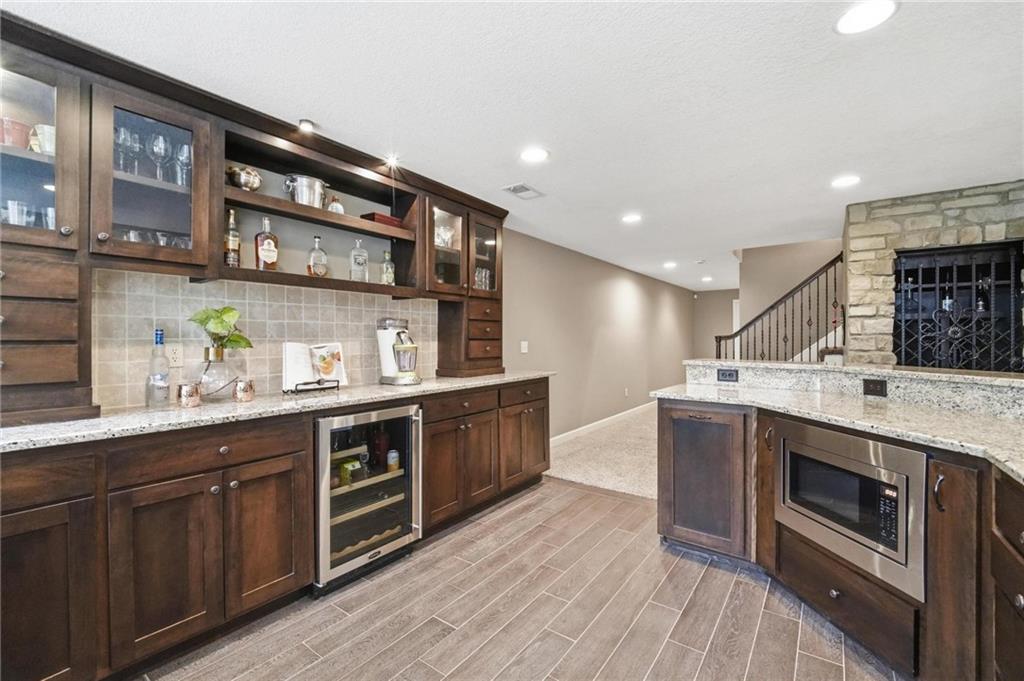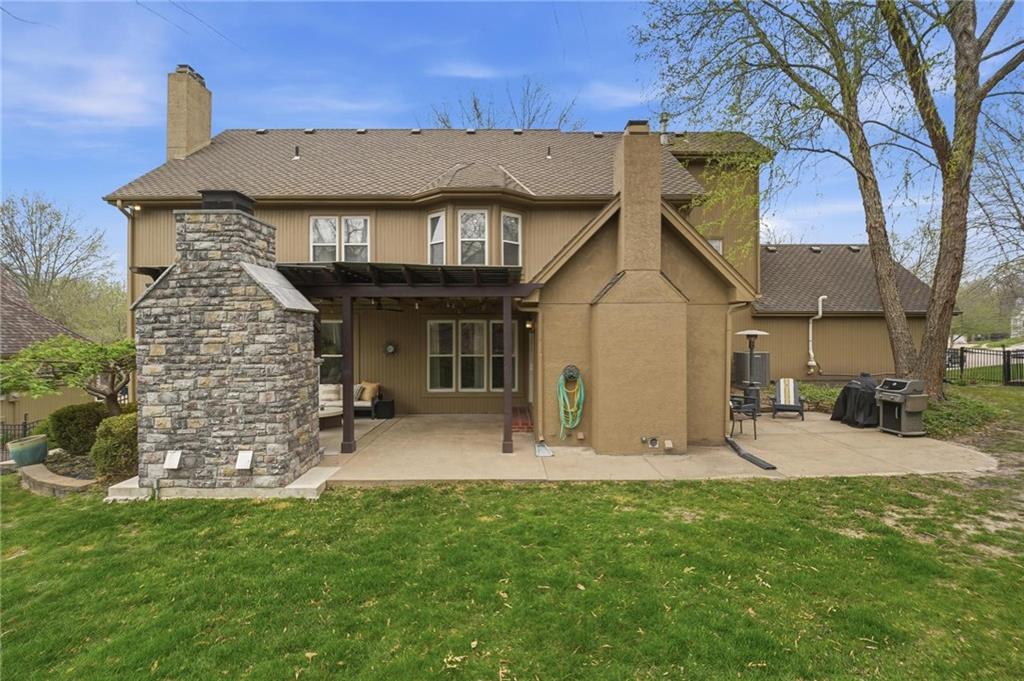 Elegant, thoughtfully transformed two-story that balances comfort and quiet luxury. From the moment you arrive, the stately front elevation and three-car garage set the tone for a home that has been carefully updated rather than simply “remodeled.” Inside, the main level flows naturally from the foyer into formal dining, a dedicated home office, and a spacious great room framed by a wall of windows and a cozy fireplace. The redesigned kitchen is the heart of the home, featuring a large center island with seating, double ovens, generous storage, and seamless connection to the breakfast area and patio. Upstairs, the reimagined primary suite offers a true retreat with a sitting area, tray ceiling, and an expansive spa-inspired bath with walk-in shower, soaking tub, and dual vanities. Secondary bedrooms are well-sized with excellent closet space. The finished lower level adds a second living zone with an oversized wet bar, fireplace, and flexible space for media, games, or guests. Outside, enjoy an elevated outdoor living experience with a custom patio, pergola, and built-in fire feature overlooking a lush, private backyard. This is the rare home where the floor plan, updates, and outdoor spaces work together beautifully—ready for its next owner to simply move in and start living.