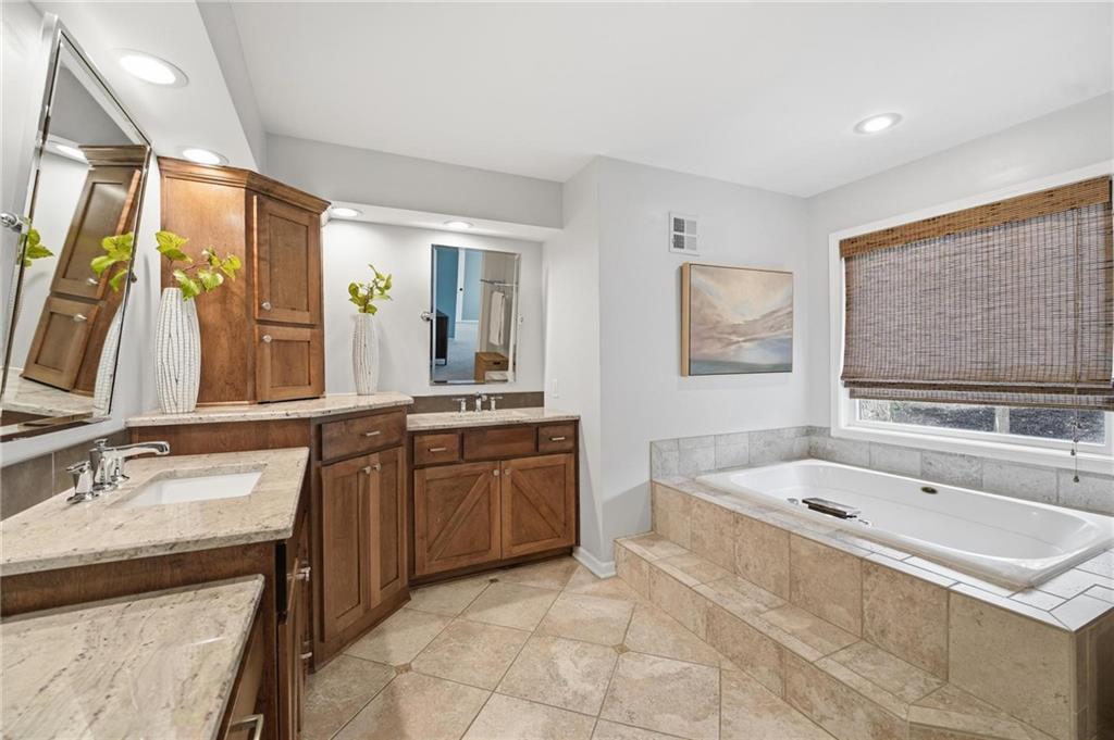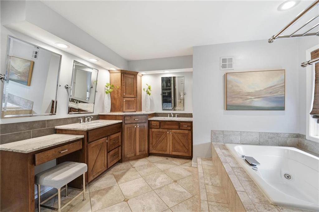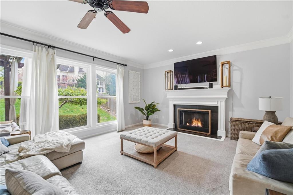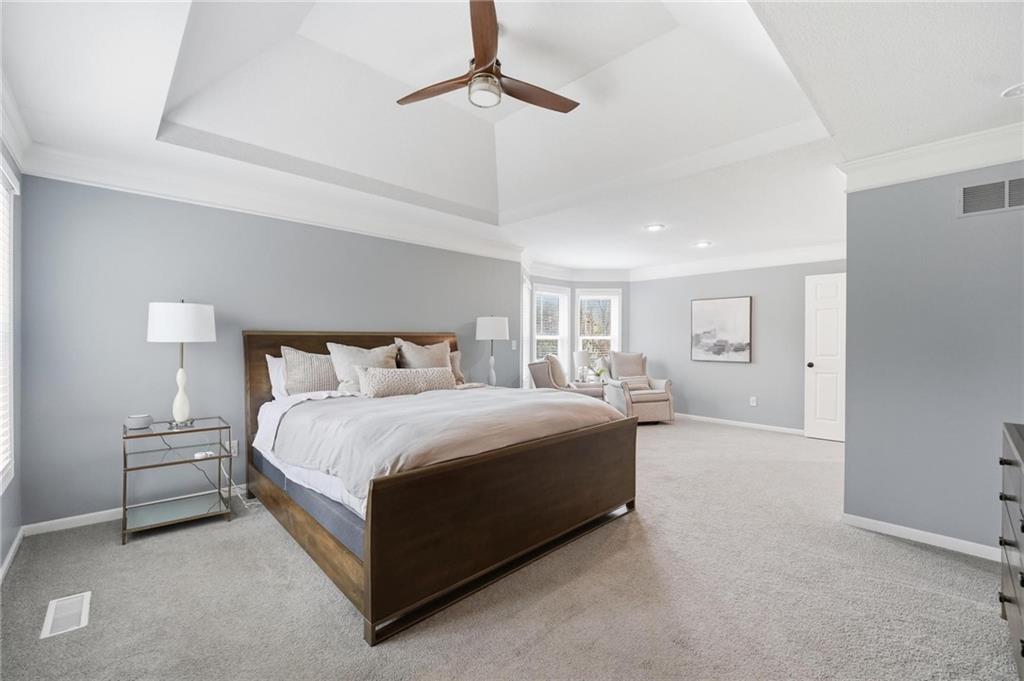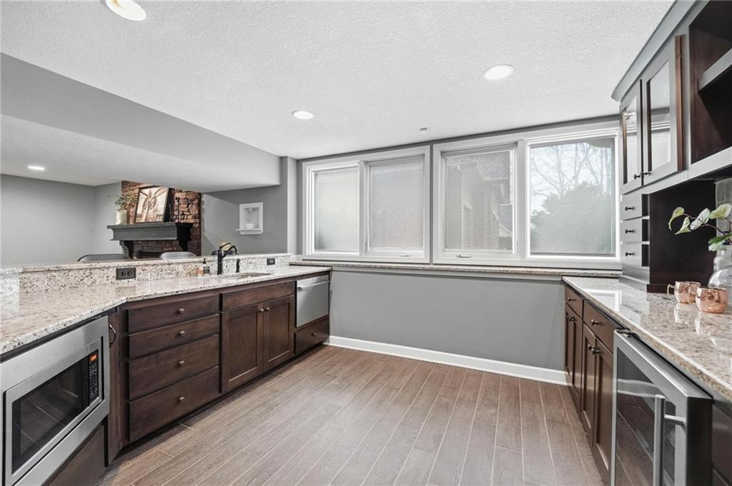Elegant, thoughtfully transformed two-story that balances comfort and quiet luxury. From the moment you arrive, the stately front elevation and three-car garage set the tone for a home that has been carefully updated rather than simply “remodeled.” Inside, the main level flows naturally from the foyer into formal dining, a dedicated home office, and a spacious great room framed by a wall of windows and a cozy fireplace. The redesigned kitchen is the heart of the home, featuring a large center island with seating, double ovens, generous storage, and seamless connection to the breakfast area and patio. Upstairs, the reimagined primary suite offers a true retreat with a sitting area, tray ceiling, and an expansive spa-inspired bath with walk-in shower, soaking tub, and dual vanities. Secondary bedrooms are well-sized with excellent closet space. The finished lower level adds a second living zone with an oversized wet bar, fireplace, and flexible space for media, games, or guests. Outside, enjoy an elevated outdoor living experience with a custom patio, pergola, and built-in fire feature overlooking a lush, private backyard. This is the rare home where the floor plan, updates, and outdoor spaces work together beautifully—ready for its next owner to simply move in and start living.