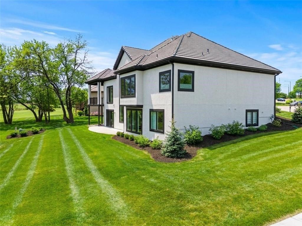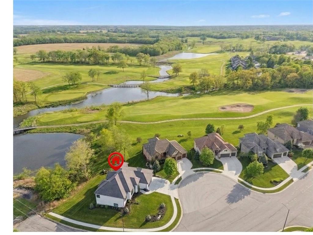 REMARKABLE, Custom Don Julian Built Home BETTER THAN NEW and rare lot with pond, treed AND golf views of one of Kansas City’s top-rated, Tiffany Greens Golf Club! TRUE RANCH! 3 Main Floor Bedrooms and 2.5 Baths! Stately Corner lot, welcomed by Double doors and Soaring Cathedral Ceilings, Floor-to-Ceiling Step-Down Windows and custom railing. Open Concept with Wide Plane Oak Wood Floors, Sleek, Gourmet Kitchen Design features large quartz island, farm sink, 5- burner gas range, and large walk-in pantry with a second oven! The primary suite is styled as “Spa Like” decor – custom closet which opens to laundry room. The Level has huge recreation space, 2 Bedrooms, and 2 Full Baths! Need Storage or a place for your golf cart?! Suspended 3- car garage with double doors to meet your needs! This home is also located in the Maintenance Provided area! Ideally located to the Community Pool, Tennis Courts and Clubhouse. Love Golf?! Tiffany Greens is IT!!!! Feels like Resort Style Living in the city! LOVE WHERE YOU LIVE!!!