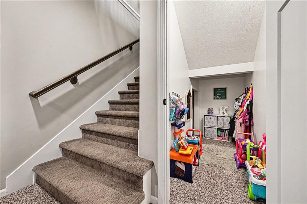 Downstairs, the finished lower level offers a large rec room with a built in bar area that is already stubbed for water, making it easy to convert into a full wet bar, complete with a mini fridge, making it ideal for entertaining. This space also includes large windows and access to the backyard. Two additional bedrooms and a full bathroom are located on this level, along with a fun under the stairs hideout currently used as a kids space. A very large utility room provides plenty of storage. The property is also pre-wired for a whole-home generator, offering added convenience for future installation.