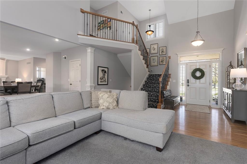 From the moment you step inside this 1.5 story Thousand Oaks home you will be drawn to a light-filled interior where natural light pours through large windows, highlighting the stunning vaulted great room—an inviting space perfect for gathering or relaxing. The open flow creates a warm and airy feel throughout the main living areas. At the heart of the home, the kitchen, dining area, and cozy hearth room seamlessly connect—creating a warm and inviting space where everyone naturally gathers. With easy access to the deck, this central hub is perfect for indoor-outdoor living, whether you’re hosting guests or enjoying a quiet evening at home. Four bedrooms provide plenty of room but the basement offers tons of storage and opportunity for a 5th bedroom if needed. The basement is a true standout, complete with a projector setup—ideal for movie nights, game days, or hosting friends and family. The walk out basement takes you to your own private retreat. A charming paver patio provides additional space for entertaining, dining, or simply unwinding in the backyard. This home truly has it all—thoughtful design, great indoor and outdoor living spaces, and a setting that feels like your own private escape.
