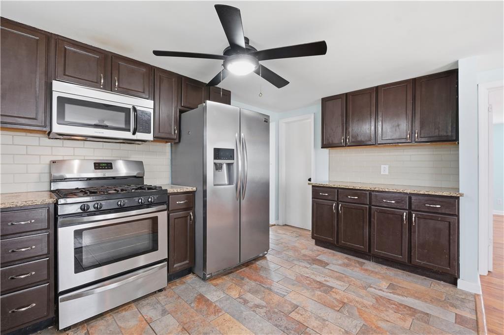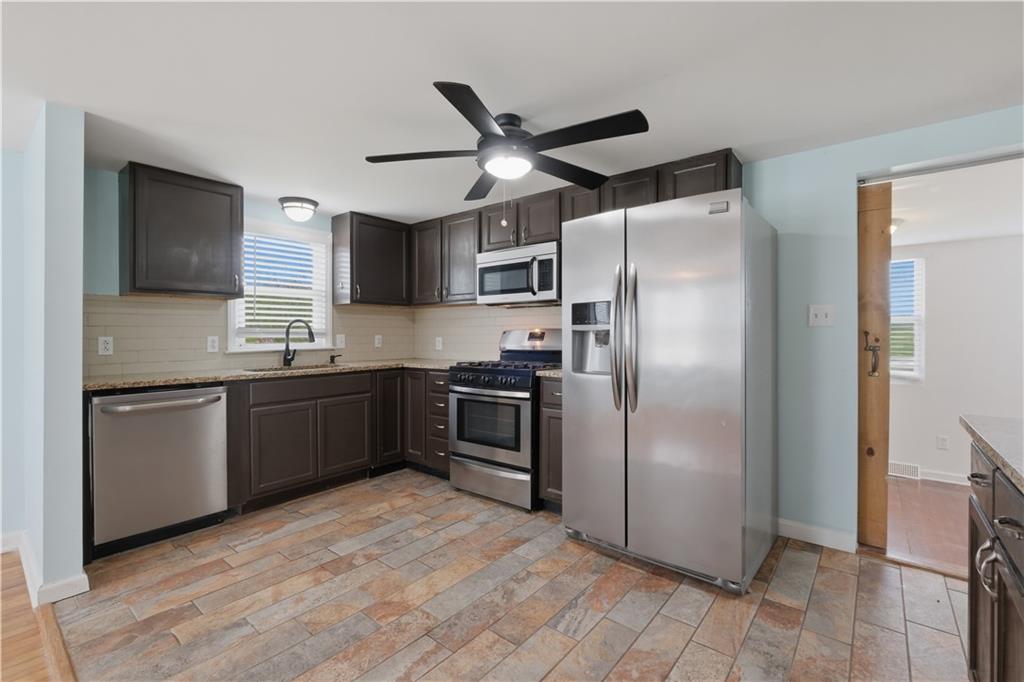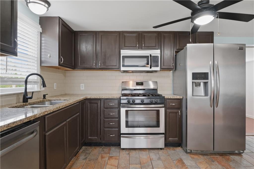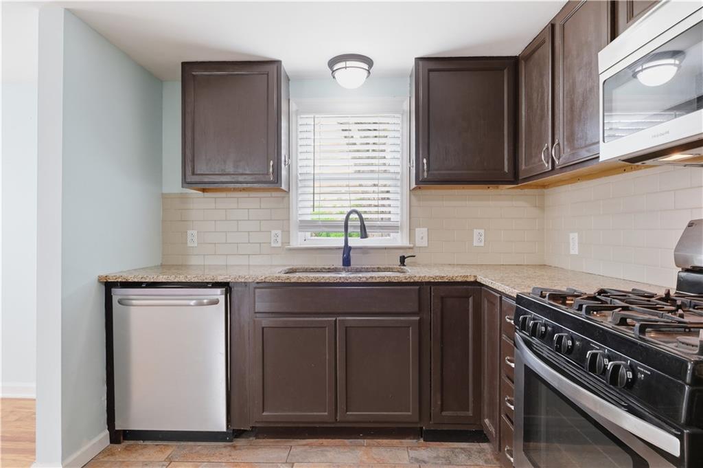 - Appliances Dishwasher, Disposal, Microwave, Refrigerator, Gas Range