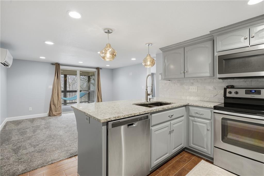 - Appliances Dishwasher, Disposal, Double Oven, Dryer, Exhaust Fan, Microwave, Refrigerator, Gas Range, Stainless Steel Appliance(s), Washer