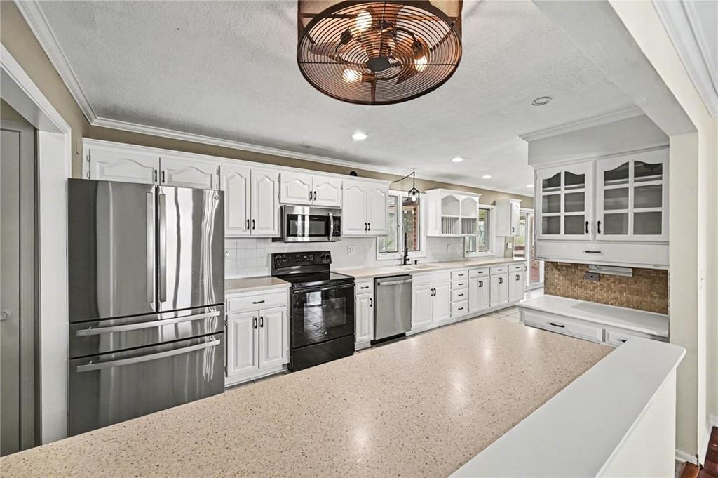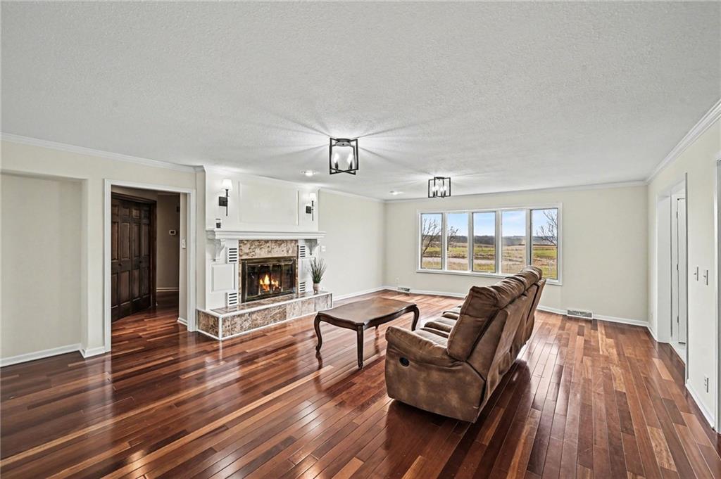Set on 19+/– acres, this charming home is full of character with bright, open spaces, gorgeous wood floors, and a beautiful fireplace that greets you at the door. The dining room features built in storage, and the kitchen blends stainless steel appliances with classic white cabinetry for a warm, timeless feel.