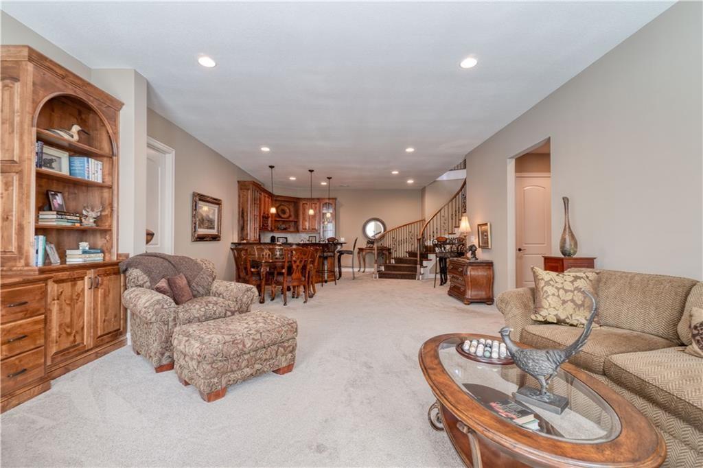 MAIN LEVEL LIVING w 3 CAR GARAGE BACK INGTO TREES! Welcome to this beautiful 3 bedroom Reverse Floorplan w a Huge Primary Bedroom and On-Suite on the main level, His and Hers Closets and an enormous primary bathroom. Enjoy floor to ceiling windows w Fireplace in the Living Room, Formal Dining Room is perfect for a Main Level Office. The Kitchen is unbelievable with plenty of Cabinetry for Storage, Walk In Pantry, Large Island, Stainless Steel Bosch Appliances, Family Room w built in Shelving and additional Fireplace and 8 Windows for tons of Natural Light, and a stunning view on not 1 but 2 Decks backing to Trees! In the Lower Level you’ll find a Bar area perfect for Entertaining, spacious Living Room for Sports Watching, Movie Viewing, or Play Area. There are 2 additional large Bedrooms with Full Bath on this level as well. Last but not least there is a MASSIVE unfinished space w beautiful windows, if you need even more living area this is your blank canvas to dream! Call the Listing Agent for a Private Showing today!