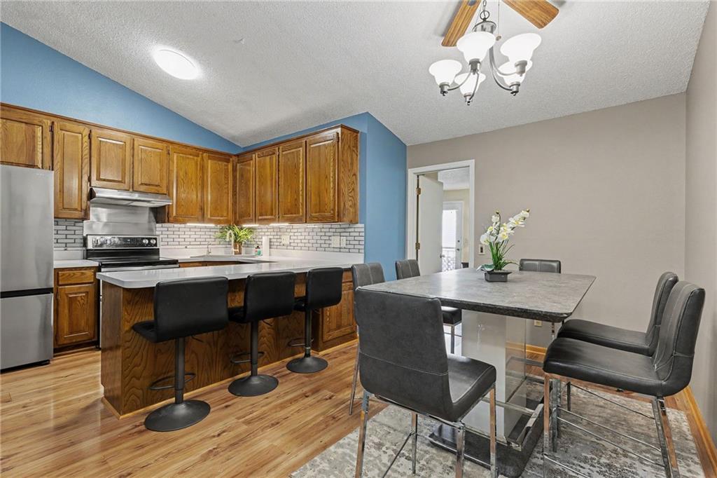 - Interior Features Ceiling Fan(s), Custom Cabinets, Kitchen Island, Stained Cabinets