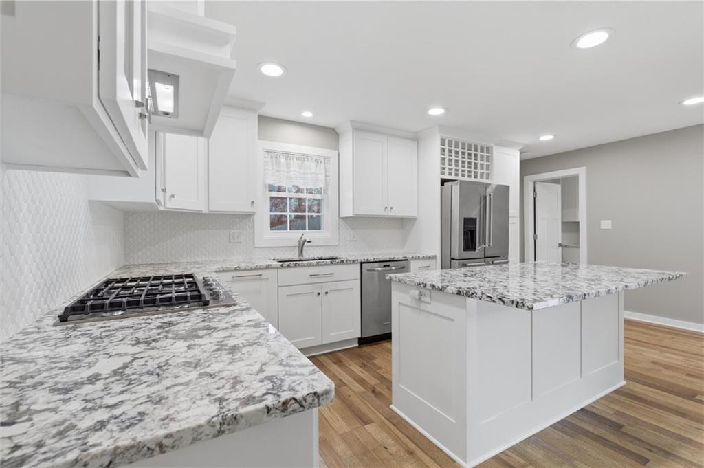 - Appliances Cooktop, Dishwasher, Disposal, Microwave, Refrigerator, Electric Range, Stainless Steel Appliance(s)