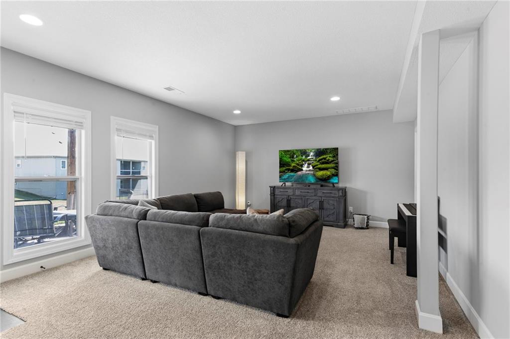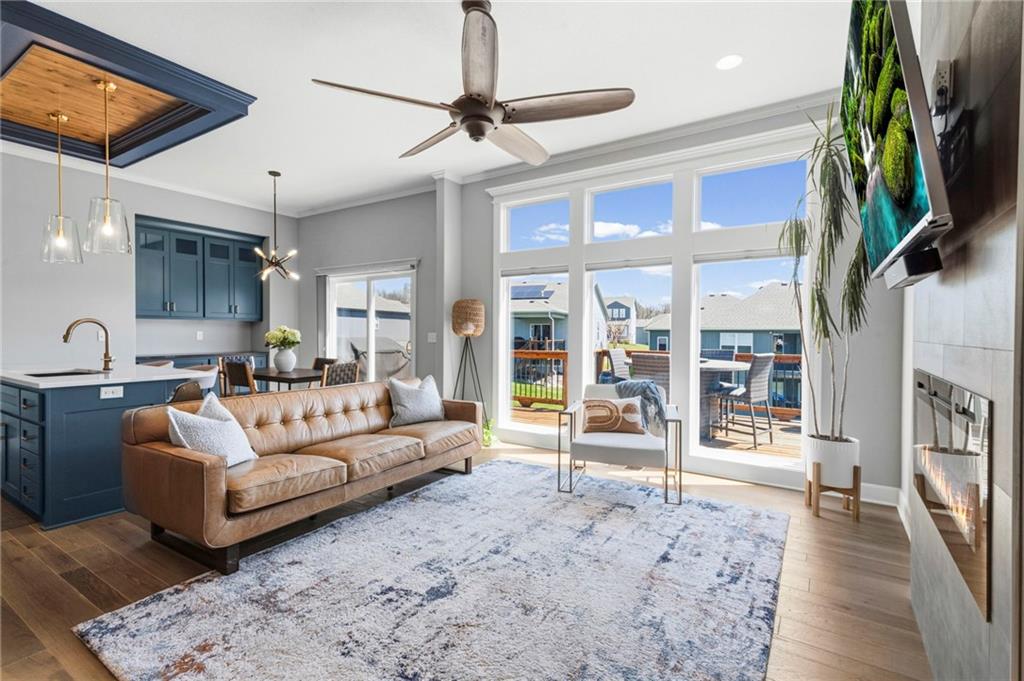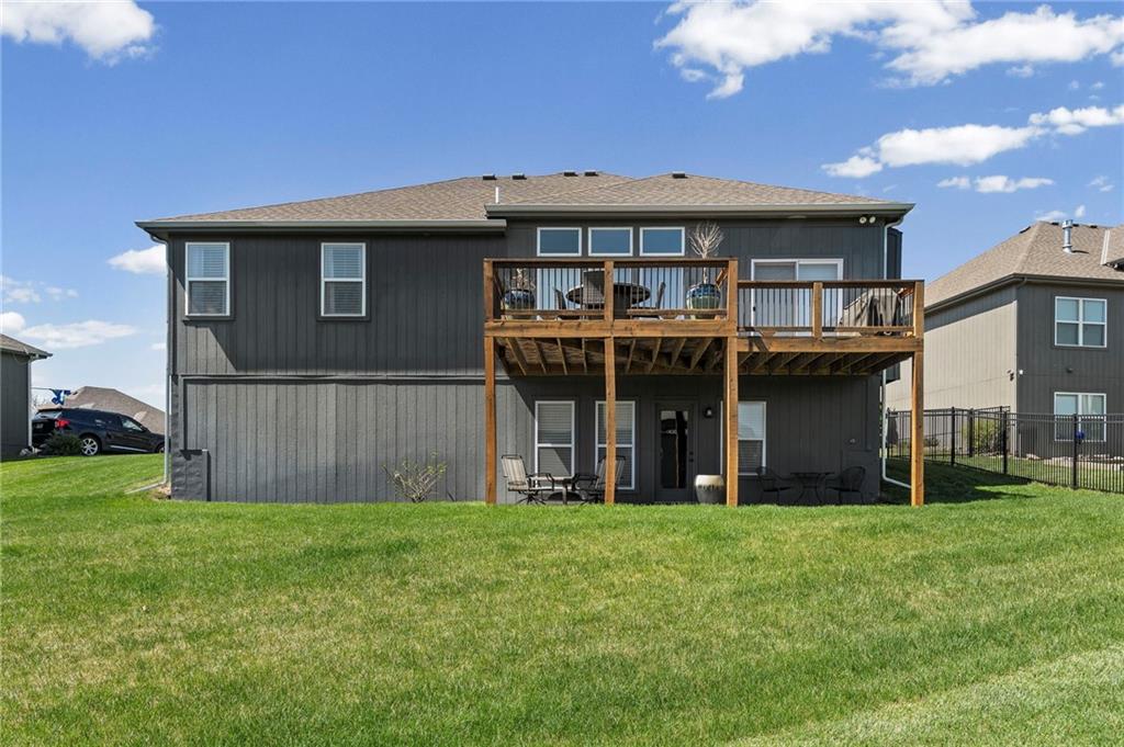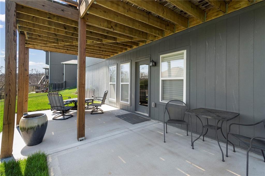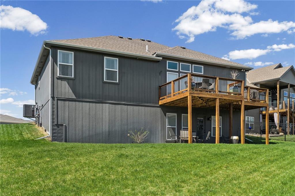 Welcome to the sought after Chapel Ridge community-where lifestyle, luxury and lifelong friendships are formed. Nestled in one of the most desirable Platte County subdivisions that offers access to resort style amenities, walking trails, clubhouse, swimming complex, stocked ponds. Step inside and prepare to be swept away with luxury, main level has 10′ ceilings with breathtaking drop down wood accents, virtual ceiling to floor windows, anchored by a striking fireplace. The kitchen is built to impress with granite counters, custom cabinetry, high end appliances, Quartz counters and a huge pantry. The eat in kitchen spills out to an oversized deck that is east facing allowing for memorable evenings outside. The primary suite is spacious and bright with large windows, the primary bath features two vanities, walk in tile shower and tons of closet space. Featuring the second bedroom on the main level, right next to a full bathroom. The lower level surprises you with a flex room for an office or workout area. Finished living room offers additional space for guests, entertaining or a peaceful movie night. Gracious 3rd bedroom is down here also. Walk out lower level to a patio larger than the oversized deck. Generous amount of storage in the lower level plus a potential work out area. Energy efficient construction, sprinkler, low E windows, high performance insulation and energy friendly HVAC. Will not last. Come and see the perfect blend of upscale finishes, smart design, carefree living in this vibrant community. Room Sizes, Taxes and square footage to be verified by the buyer or buyer’s agent.