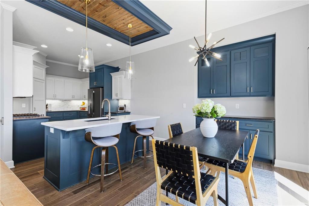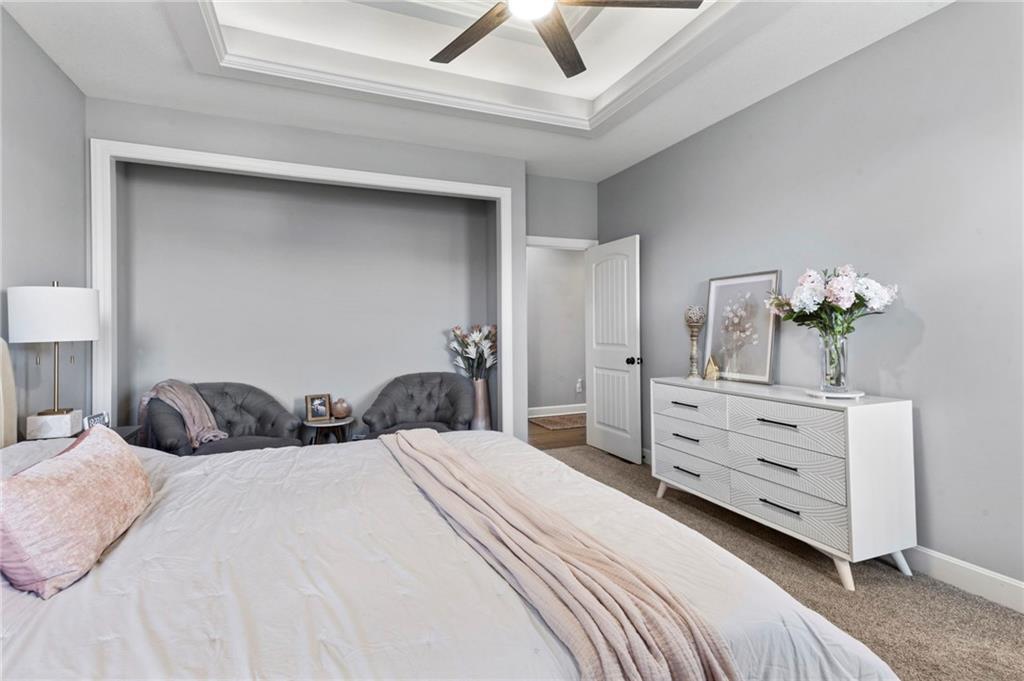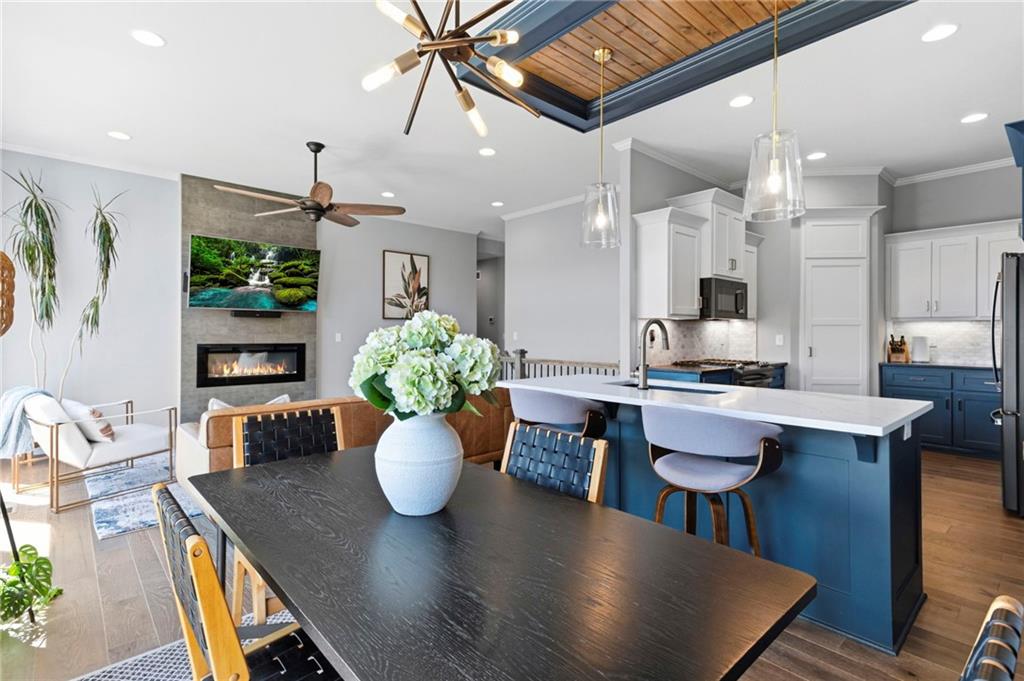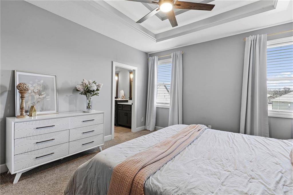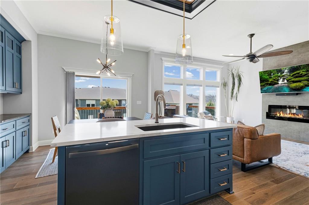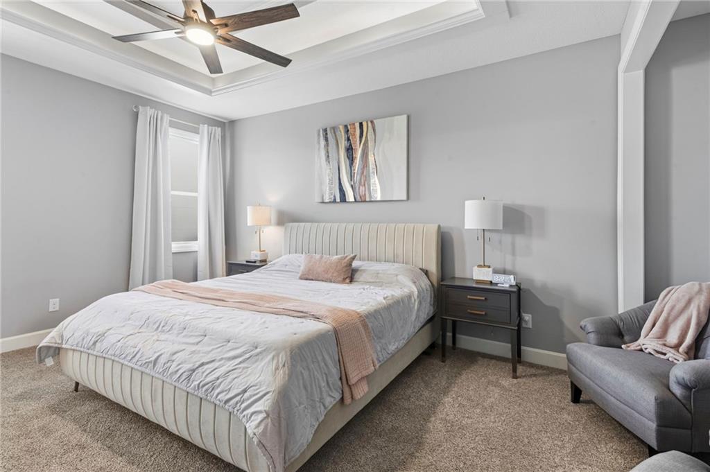 Welcome to the sought after Chapel Ridge community-where lifestyle, luxury and lifelong friendships are formed. Nestled in one of the most desirable Platte County subdivisions that offers access to resort style amenities, walking trails, clubhouse, swimming complex, stocked ponds. Step inside and prepare to be swept away with luxury, main level has 10′ ceilings with breathtaking drop down wood accents, virtual ceiling to floor windows, anchored by a striking fireplace. The kitchen is built to impress with granite counters, custom cabinetry, high end appliances, Quartz counters and a huge pantry. The eat in kitchen spills out to an oversized deck that is east facing allowing for memorable evenings outside. The primary suite is spacious and bright with large windows, the primary bath features two vanities, walk in tile shower and tons of closet space. Featuring the second bedroom on the main level, right next to a full bathroom. The lower level surprises you with a flex room for an office or workout area. Finished living room offers additional space for guests, entertaining or a peaceful movie night. Gracious 3rd bedroom is down here also. Walk out lower level to a patio larger than the oversized deck. Generous amount of storage in the lower level plus a potential work out area. Energy efficient construction, sprinkler, low E windows, high performance insulation and energy friendly HVAC. Will not last. Come and see the perfect blend of upscale finishes, smart design, carefree living in this vibrant community. Room Sizes, Taxes and square footage to be verified by the buyer or buyer’s agent.