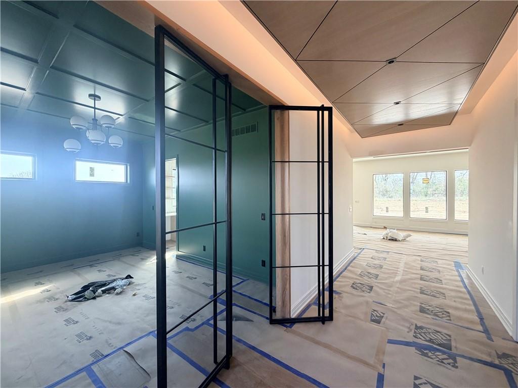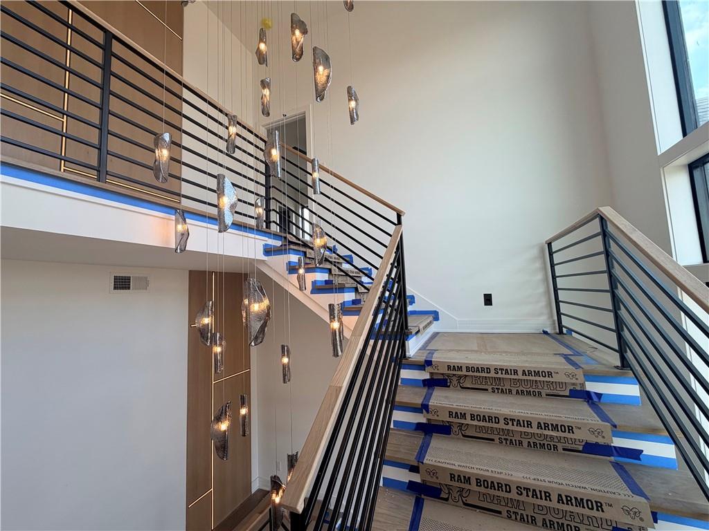 Welcome to Lot 47 The Ackley by Sycamore Road Homes! Exceptional 1.5 Story on a ¾ +/- acre estate lot with a huge flat backyard ideal for a future pool, outdoor oasis, or play area. This home features a 4-car garage with pedestrian door to the backyard and a dramatic 3-story open stairwell with a stunning floor-to-ceiling picture window. Striking black windows, intricate woodwork with accent lighting, and engineered hardwoods on the main floor add custom style throughout. The spacious main level includes a large study/flex room, mud room, and an open Great Room, Kitchen, and Dining area with tall ceilings. The kitchen is appointed with a large island, high-end appliances, 48″ refrigerator/freezer, gas cooktop, butler’s pantry, and walk-in pantry. The main-level primary suite offers dual vanities, a freestanding tub, large walk-in shower with designer glass surround, and laundry access connected to both the hall and primary closet. Upstairs features a huge loft, 3 large bedrooms with walk-in closets, including one en-suite, plus a Hollywood-style shared bath. Lower level is stubbed for a full bath and offers room for a 5th bedroom, workout space, and large family room. Built with 2×6 exterior walls, upgraded Spider insulation, and 400-amp service for future pool potential.