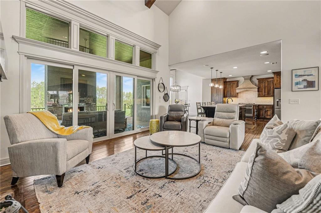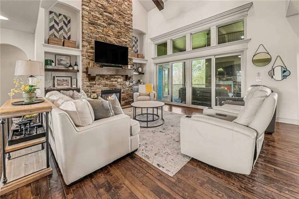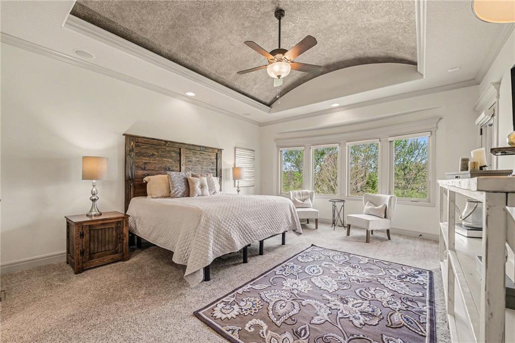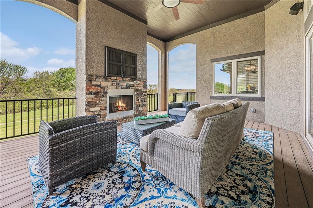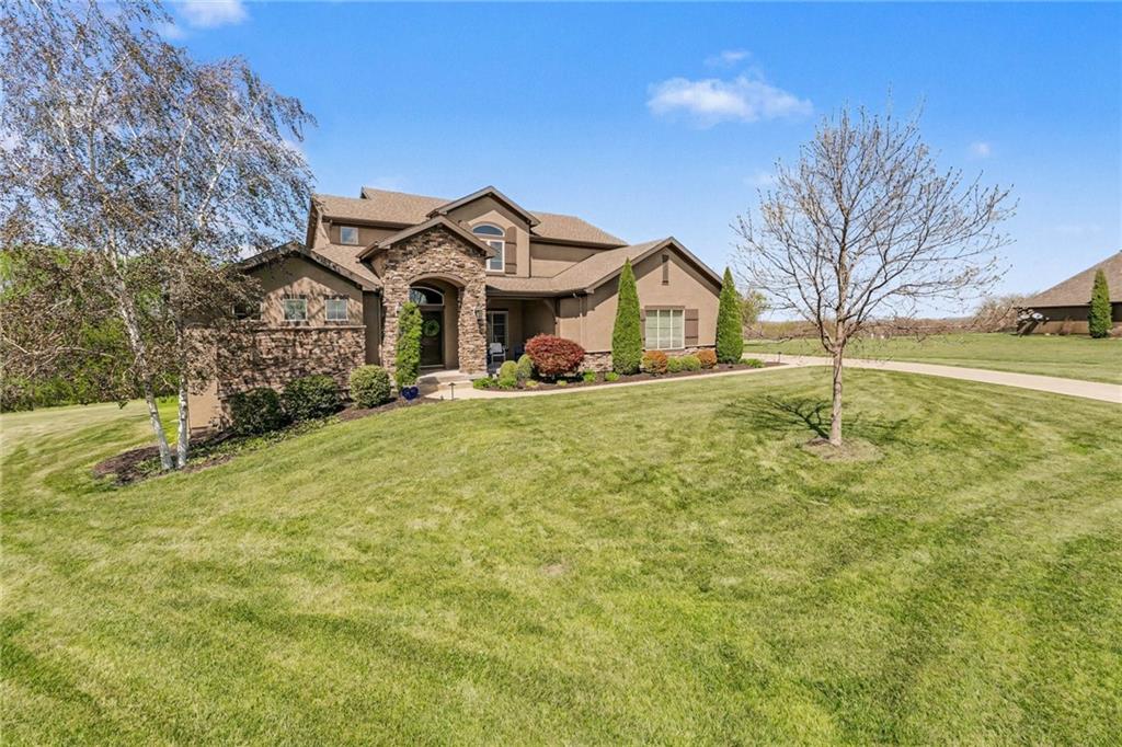Rare, private 0.53-acre cul-de-sac lot backing to mature trees sets the stage for this custom-built 1.5-story home by Distinctive Homes in the sought-after Green Glades at The Masters. Designed for both everyday living and entertaining, the main level offers a spacious foyer with open sightlines and thoughtfully connected living spaces. A private office with French doors sits at the front of the home, while the formal dining room features a striking custom stone accent wall and flows seamlessly into the living room with a matching floor-to-ceiling stone fireplace. Large dual patio doors that fully open lead to a covered deck with an outdoor fireplace, creating an ideal space to enjoy the peaceful, private, tree-lined backyard. The kitchen includes a large island, granite countertops, gas range, custom vent hood, beverage fridge, and walk-in pantry, along with a second dining area overlooking the backyard. The primary suite offers a true retreat with a barrel ceiling, private access to the covered deck, and a spacious walk-in closet. The en-suite bath features heated tile floors, a soaking tub, walk-in shower, and dual vanities. Upstairs, each bedroom includes its own en-suite bath and walk-in closet. The upper level also features a loft space with a hidden bookcase door, a wet bar area, and an additional laundry option. The newly finished lower level is ideal for entertaining, complete with a large island, full wet bar, and expansive living space, along with two large storage areas. Additional features include a four-car garage, a suspended garage with exterior access ideal for a golf cart or additional storage, a drop zone off the garage, and multiple flexible living spaces throughout the home. Located in the highly regarded Park Hill School District.