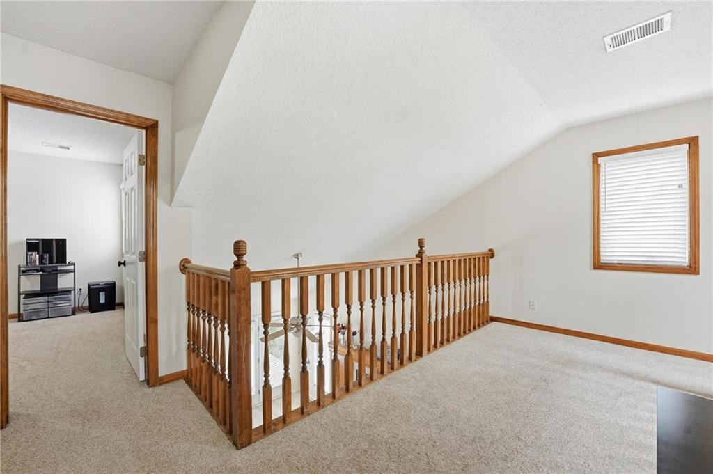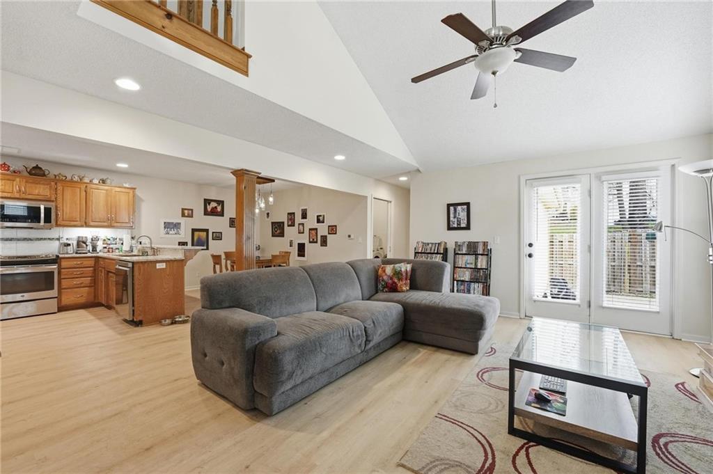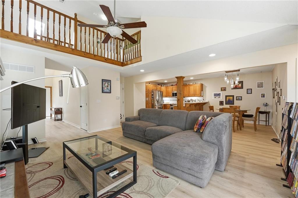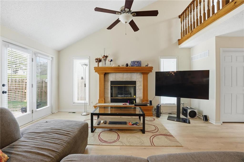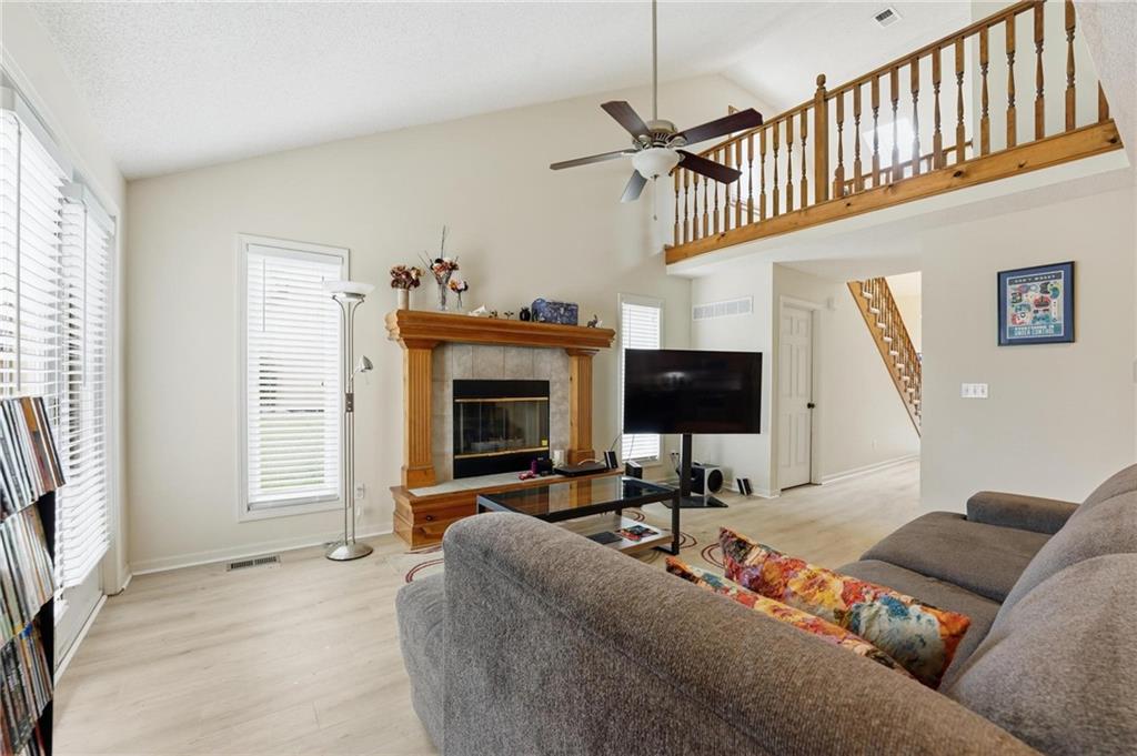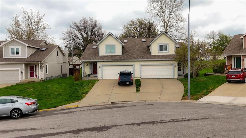 Welcome to this well-maintained end-unit townhome in the sought-after Barrybrooke on the Lake community, just off I-29 and Barry Road, and just a short stroll from the water. Located in the sought-after Park Hill School District. Ideally located near highways, shopping, dining, and healthcare, this townhome offers 3 bedrooms, 2 1/2 bath and 1,717 sq ft of living space, blending comfort, convenience and style. The main-level suite provides easy living with a spacious walk-in closet and a private bath featuring double vanities. Laundry room is conveniently located outside of the primary bedroom. ADDED BONUS: washer and dryer staying! Located in the sought-after Park Hill School District. The kitchen offers stainless appliances and a practical layout with a pantry for extra storage, while recently added vinyl plank flooring flows through much of the home giving it a fresh, modern feel. The open concept carries into the family living room, with vaulted ceiling and gas-starter, wood-burning fireplace. Upstairs you will find a small loft area and skylights, plus 2 additional bedrooms for guests, family or home office. Downstairs, the expansive unfinished basement offers incredible poitential- already stubbed for a bathroom and showwer and equipped with a sump pump, making it ideal for future finishing or more than enough storage. Step outside into the nice level backyard with wooden privacy fence. As an end unit, you’ll appreciate the added privacy and natural light. Plus you have the benefits of no through traffic in the private cul-de-sac!