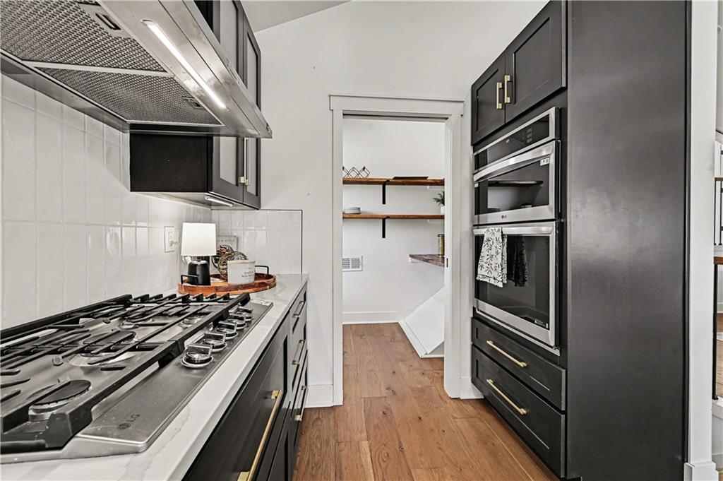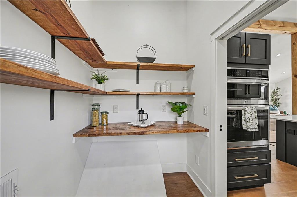 - Appliances Dishwasher, Disposal, Double Oven, Microwave, Gas Range, Stainless Steel Appliance(s)