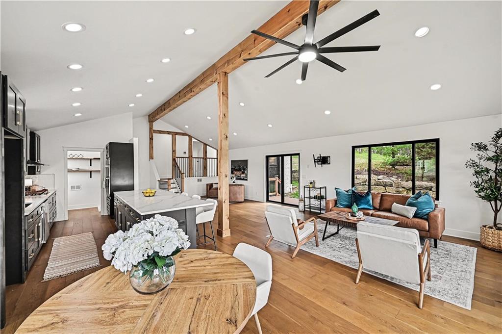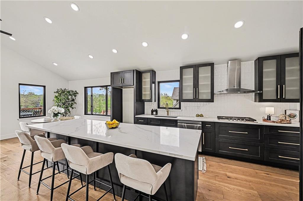 Spring into Lake Life on Weatherby Lake! With 3,300 square feet of renovated space, this 4-bedroom, 3-bathroom tri-level home offers a unique layout with details to luxury, comfort, and convenience. Located in the Park Hill School District, this 2nd tier home offers a BONUS of 10 feet of lake frontage which houses a shared dock on the 274-acre lake. The dock and lake front is 1/2 miles away from home located on the right. The great room features vaulted ceilings and an open concept design with natural light flowing in from the new Pella windows (with transferable warranty) installed throughout the home showcasing stunning lake views. Quartz countertops and a large center island with seating for 4+ grace the kitchen which has been well furnished with LG appliances. Coupled with this stunning new kitchen you’ll find a spacious butler’s pantry with open shelving, butcher block countertop and natural lighting. Kohler fixtures installed throughout along with Carrera marble vanity tops in all three bathrooms elevate the luxury vibe of this home. Engineered hardwood flooring throughout the main living areas with stylish tile in the bathrooms & carpet in the bedrooms with memory foam padding. You’ll find a family room, laundry, bathroom, and the 4th bedroom featuring a walk-in closet on the lower level. The newly constructed pergola adds a welcoming touch to the home’s curb appeal. The brand new & widened driveway provides plenty of room for multiple vehicles. Two new maintenance-free decks or the elevated firepit area make this home perfect for outdoor living. This vibrant community offers endless amenities like basketball, pickleball, and tennis courts, walking trails, and several community parks. Connect with the community at events such as the yearly 4th of July celebration or seasonal music in the park. Groups such as the yacht club, junior sailing, or gardening offer more opportunity to connect. Don’t miss this opportunity to call Weatherby Lake HOME!