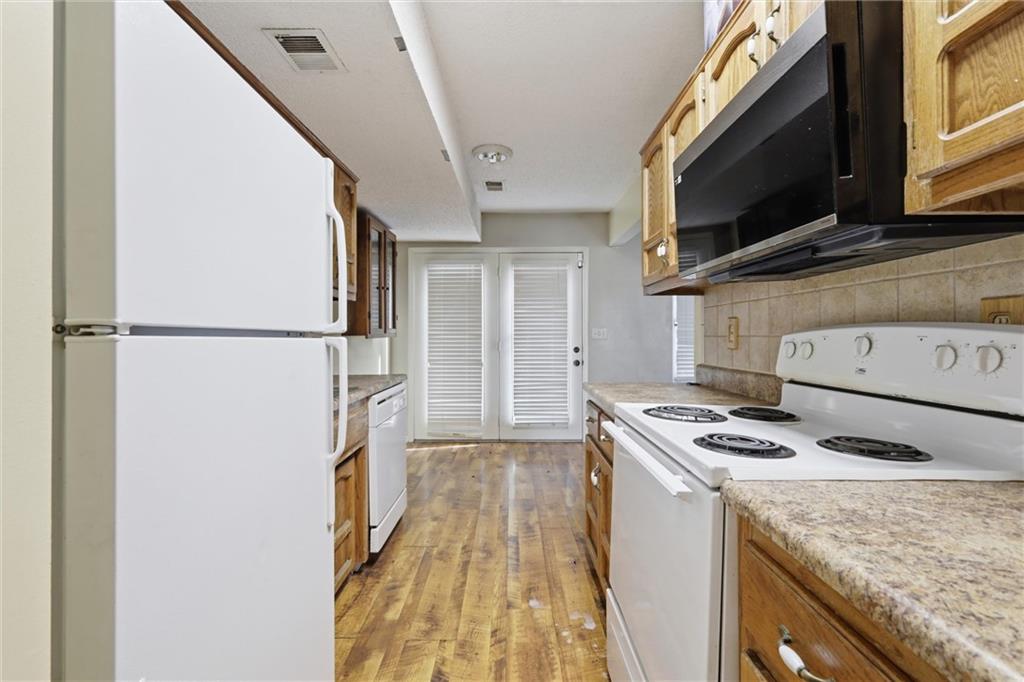 Great opportunity for investment or first time home buyer. Bones are good, but does need some cosmetic updates. The home features a bright and airy layout with neutral tones throughout, ready for your personal touch. A cozy gas fireplace is the focal point for the home’s living room. In the kitchen, all appliances stay and the deck is accessed through the glass door in the eat-in kitchen. Both bedrooms are generously sized with plush carpeting, ceiling fans for year-round comfort, and ample closet space—including a convenient walk-in closet in the primary suite and mirrored sliding doors in the second bedroom. Enjoy a full bathroom upstairs featuring a large vanity and a practical tub/shower combo, plus a convenient half-bath on the main level for guests. No more trips to the laundromat! This unit includes a dedicated laundry closet on bedroom level, equipped with a washer and dryer set and overhead shelving for extra storage. Whether you’re a first-time homebuyer or looking to add to your investment portfolio, this townhouse is not to be missed. Schedule your showing TODAY.