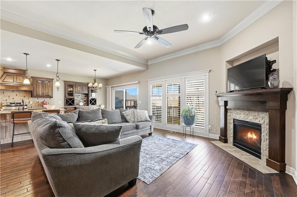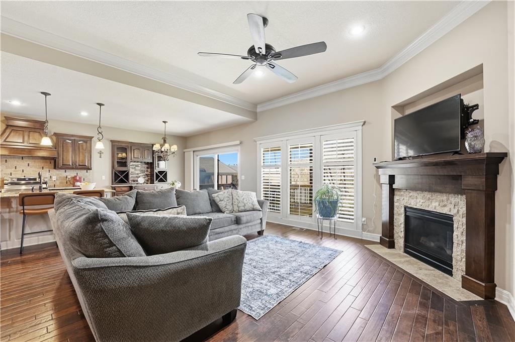High-end touches throughout include hand-scraped hardwood floors, plantation shutters, and upgraded carpet—giving the home a polished, move-in ready feel.