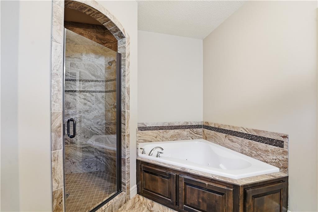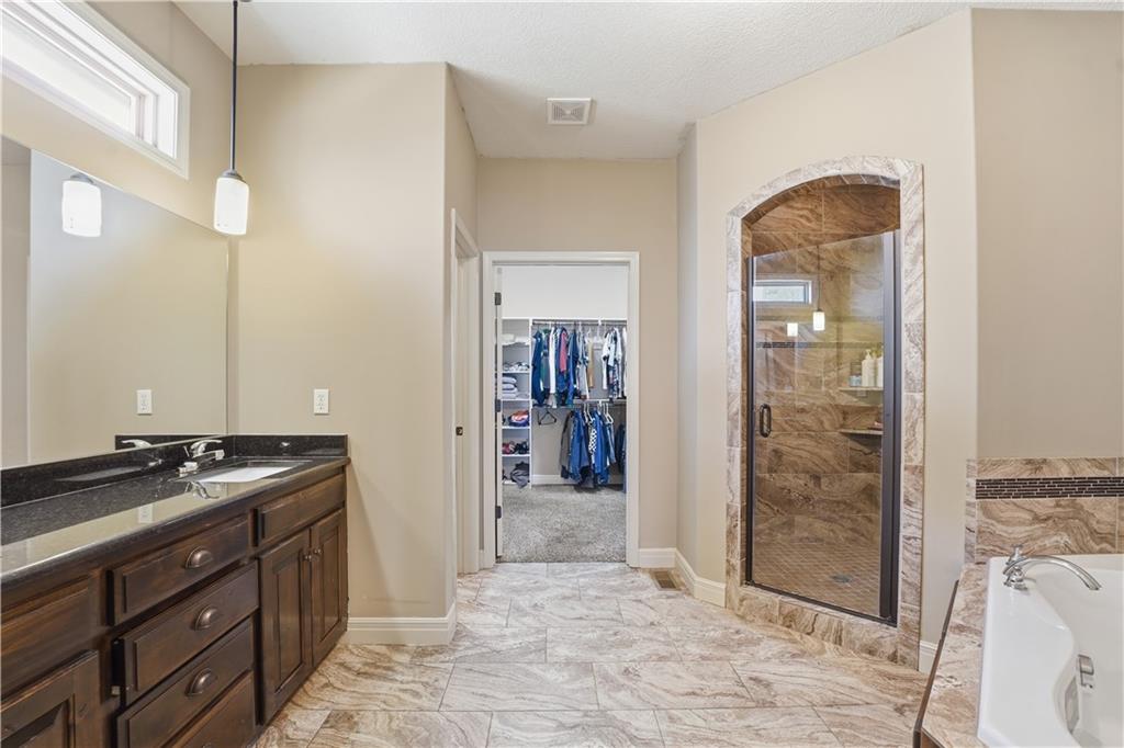 The main level is designed for convenience and flow, featuring the primary suite and a second bedroom, along with two full baths—ideal for those wanting main-level living without compromise. The primary suite delivers a true retreat with granite countertops, dual sinks, a jetted tub, and separate shower.