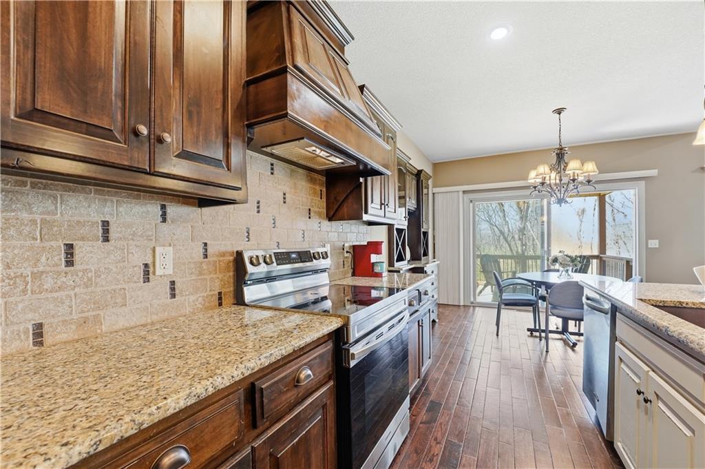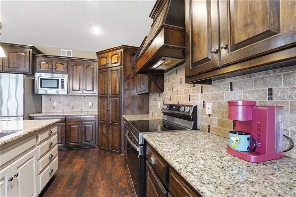 - Appliances Dishwasher, Disposal, Double Oven, Exhaust Fan, Microwave, Refrigerator, Electric Range, Stainless Steel Appliance(s)