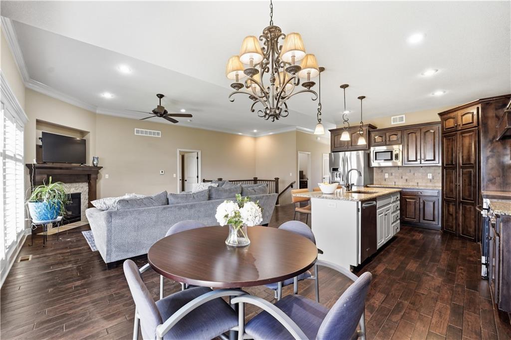 The kitchen is the heart of the home, complete with granite countertops, island, pantry, and upgraded stainless steel appliances that all stay—opening seamlessly into the dining and living areas, perfect for both everyday living and entertaining.