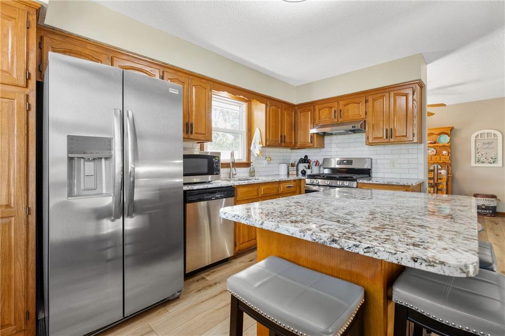 The kitchen has been beautifully remodeled with subway tile backsplash, granite countertops, sleek black hardware, and a large island for casual seating and extra prep space. And yes, there are two pantries—perfect for keeping everything organized. The bedrooms are spacious with ceiling fans, and the primary suite offers two closets and an updated tile bathroom with a walk-in shower. You’ll also notice the freshly stained deck and new flooring throughout, all done within the last few years. Step outside and you’ll see why this property is so special—plenty of seating areas to take in the view and enjoy the nearly one-acre lot. This is such a beautiful property, and we can’t wait to show you around in person!