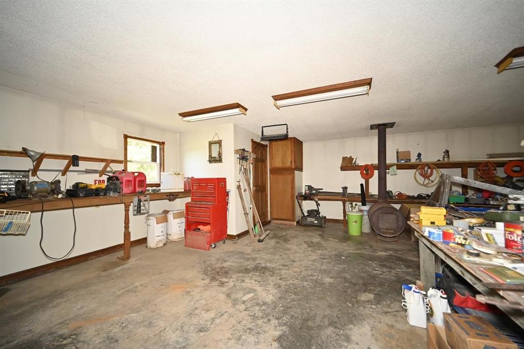 The home sits on approximately 32 acres, with two parcels included in the property. The land includes both hay and bean/corn crops each year. An older barn still has a stall for a horse (fencing may need to be checked or added), and there’s also a metal barn with a pole/lean-to that can be used as a garage or for farm equipment. The shop features a one-car garage door and is a nice-sized workshop complete with a full bath.