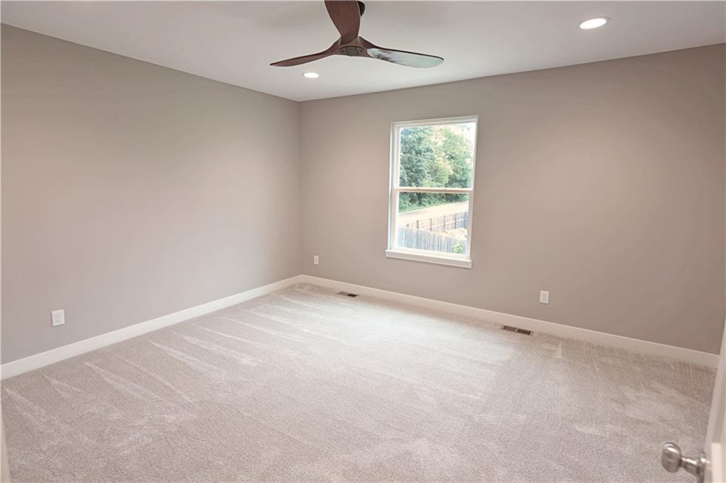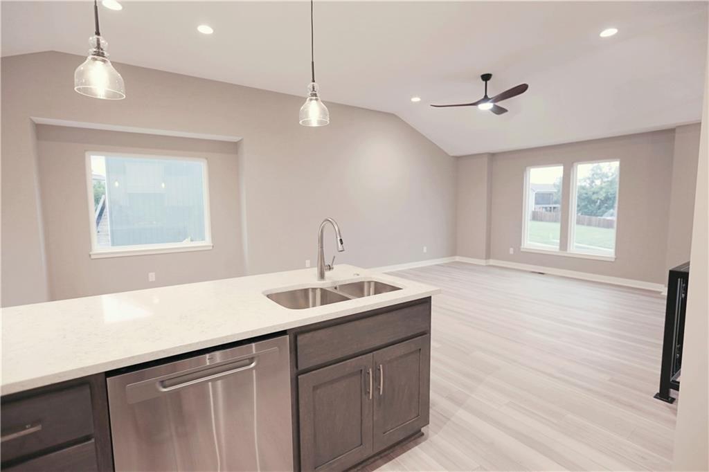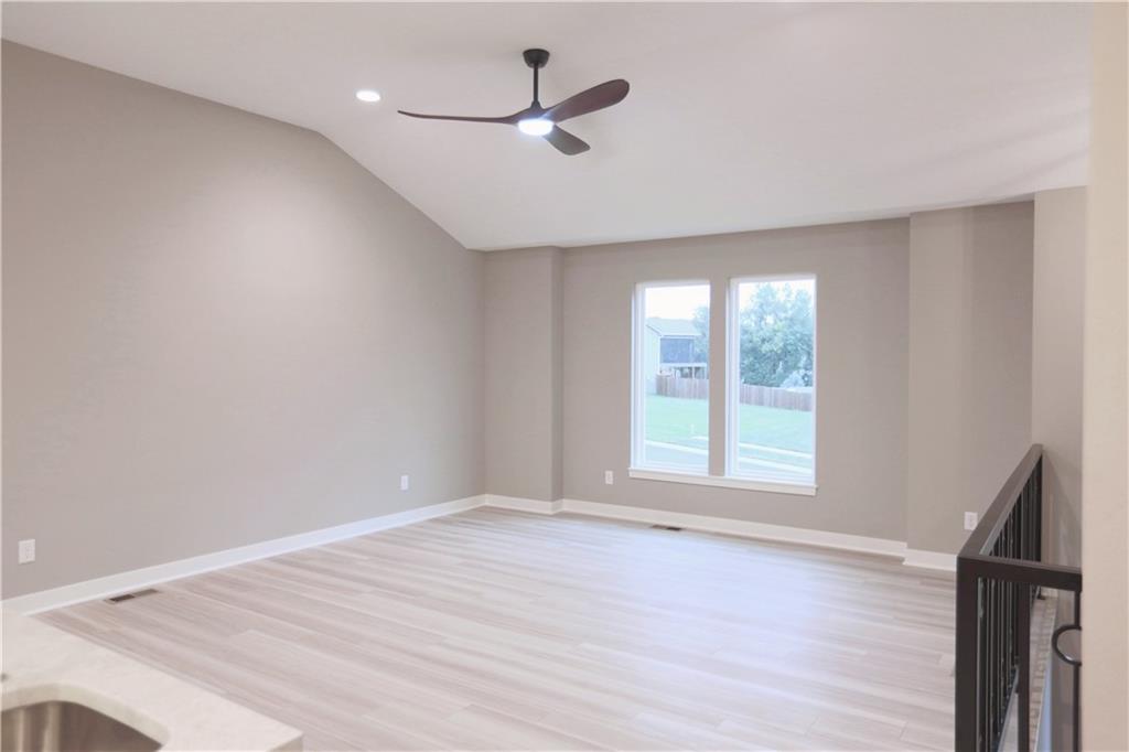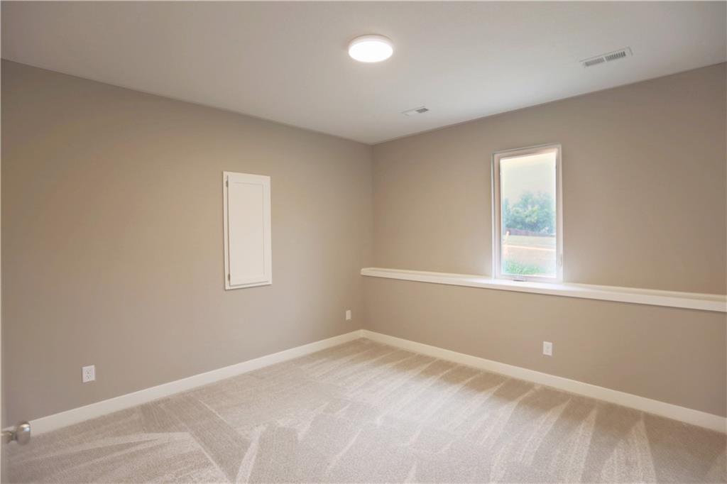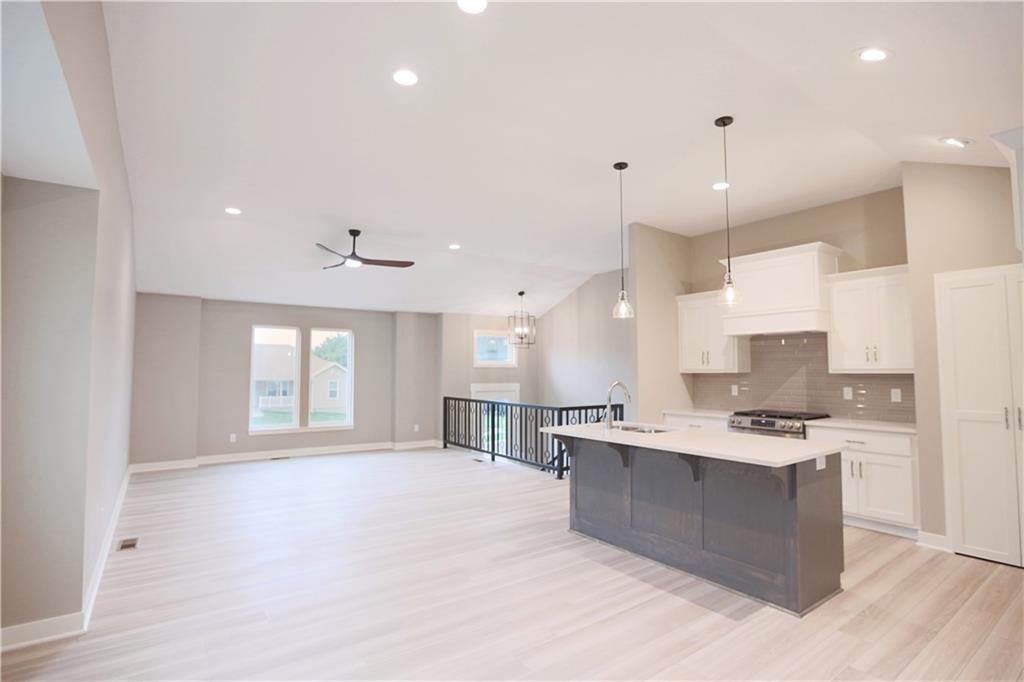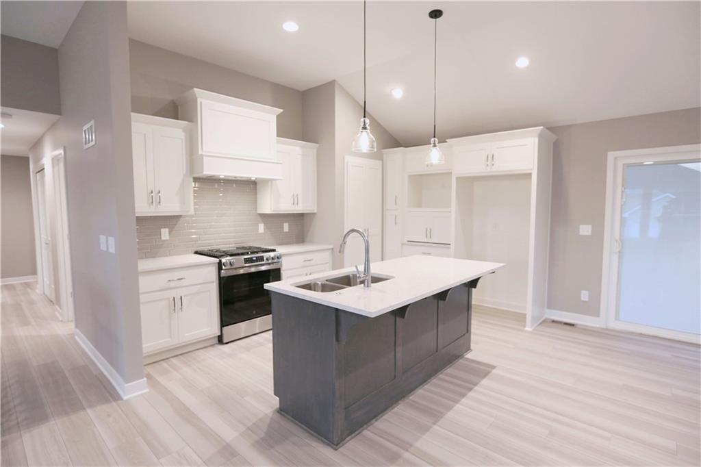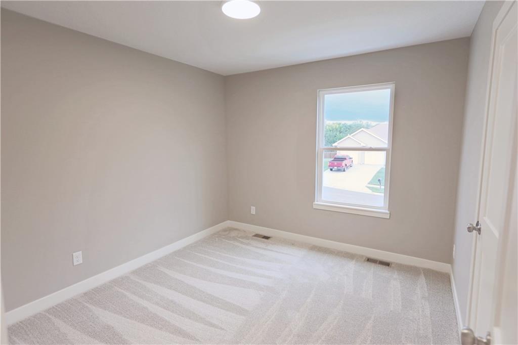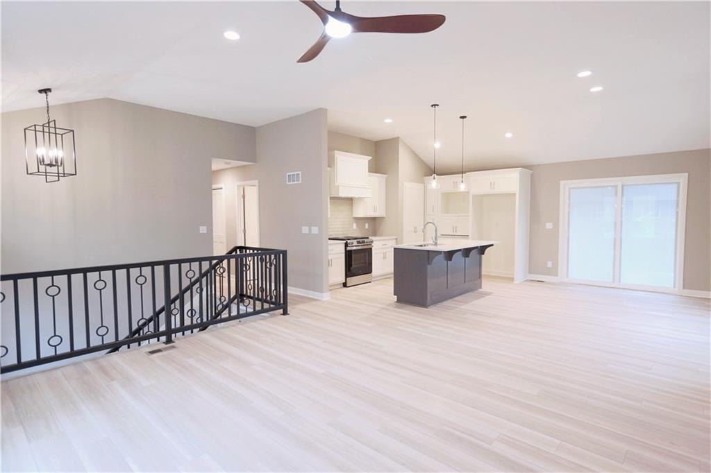 Stunning new construction with tasteful, modern-edge selections throughout—including flooring, lighting, appliances, and finishes. This open-concept layout features a beautiful kitchen island that flows into the living and dining areas, highlighted by striking custom cabinets and an upgraded gas stove. The custom entry hand railing adds a unique, upscale touch. Main-level laundry and a spacious master suite with a spa-like shower and walk-in closet offer everyday convenience. The finished walk-out basement includes a fourth bedroom and third full bath—perfect for guests or extended living. Enjoy outdoor living on the covered back deck and patio below. Situated on a spacious corner lot on a quiet cul-de-sac—an ideal location!