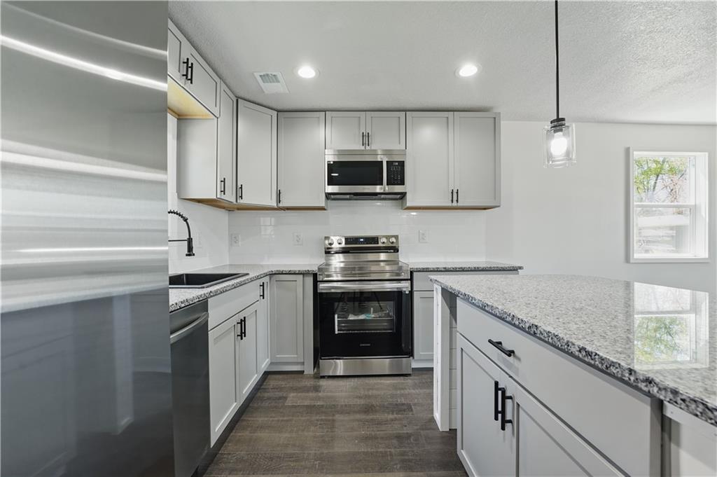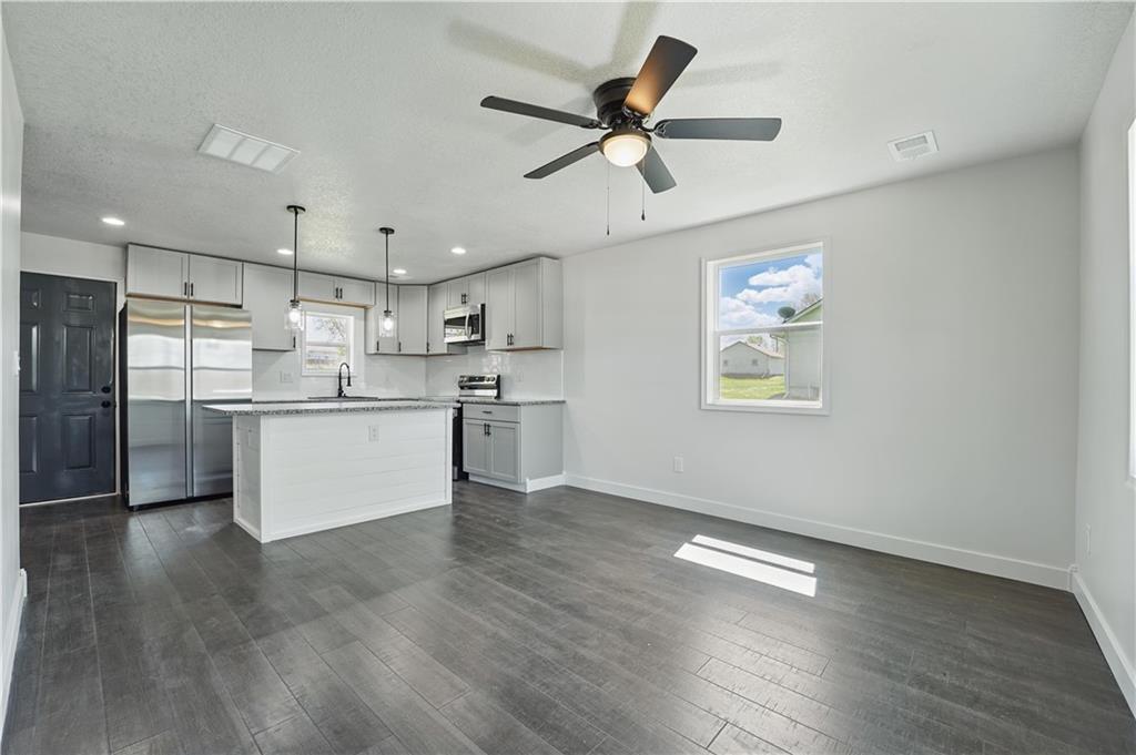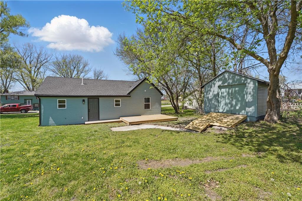 Everything is Brand New! This beautifully remodeled 2-bedroom, 2-bath home in Excelsior Springs has been taken down to the studs and rebuilt with care and quality—fully permitted and move-in ready! You’ll love the open layout featuring all-new windows, siding, HVAC, subfloor, drywall, Laminate wood flooring, tile, carpet, and paint. The stylish kitchen is outfitted with custom cabinets, granite countertops, and brand-new stainless appliances. Both bathrooms are modern and bright, with on-trend finishes and fixtures. A stackable washer and dryer are included, and the water heater is brand new too. Enjoy peace of mind knowing everything—inside and out—is completely redone. Bonus: Large lot with fresh concrete drive, new decks, and a handy storage shed out back. Call me today to schedule your private showing!