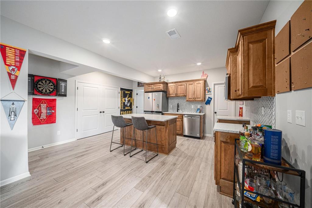 Motivated Sellers! Bring an offer! Seller is offering a $5k credit to buyer at closing to go towards closing costs or rate buy down with an approved offer! Welcome to this beautifully designed 4-bedroom, 3-bathroom home tucked away on a quiet cul-de-sac in a prime location. Just minutes from shopping, restaurants, & convenient highway access, this property offers both comfort & convenience. Built in 2022, this home feels fresh, modern, & move-in ready. The main level features an inviting open layout and a full, well-appointed kitchen, perfect for everyday living. Downstairs, the fully finished walkout basement offers a second full kitchen, making it an incredible setup for multigenerational living, guests, entertaining, or rental potential. With 4 spacious bedrooms, 3 full baths, and flexible living areas on both levels, this home provides room for everyone. The walkout basement leads directly to the large fenced in backyard backing to trees, giving you easy indoor–outdoor flow & space to enjoy. Located on a peaceful cul-de-sac while still close to all local amenities, this home truly checks every box—modern construction, dual kitchens, great layout, & an unbeatable location. Don’t miss it!
