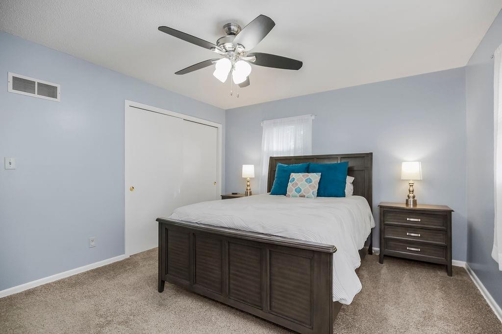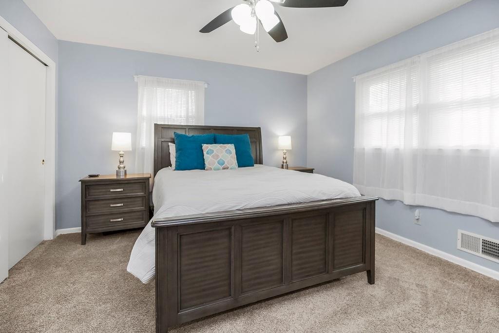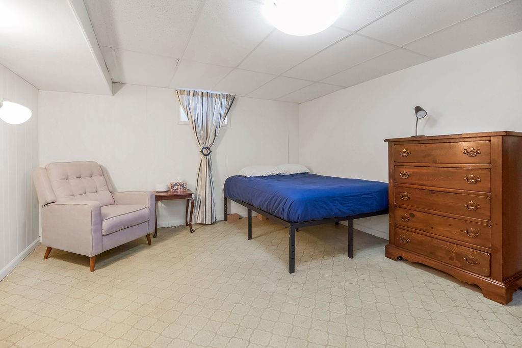 All three bedrooms are spacious, and both full bathrooms offer great functionality—one with a double vanity and classic mid-century tile. The partially finished lower level adds even more usable space with a rec room, a second fireplace, storage areas, and a non-conforming bedroom option.