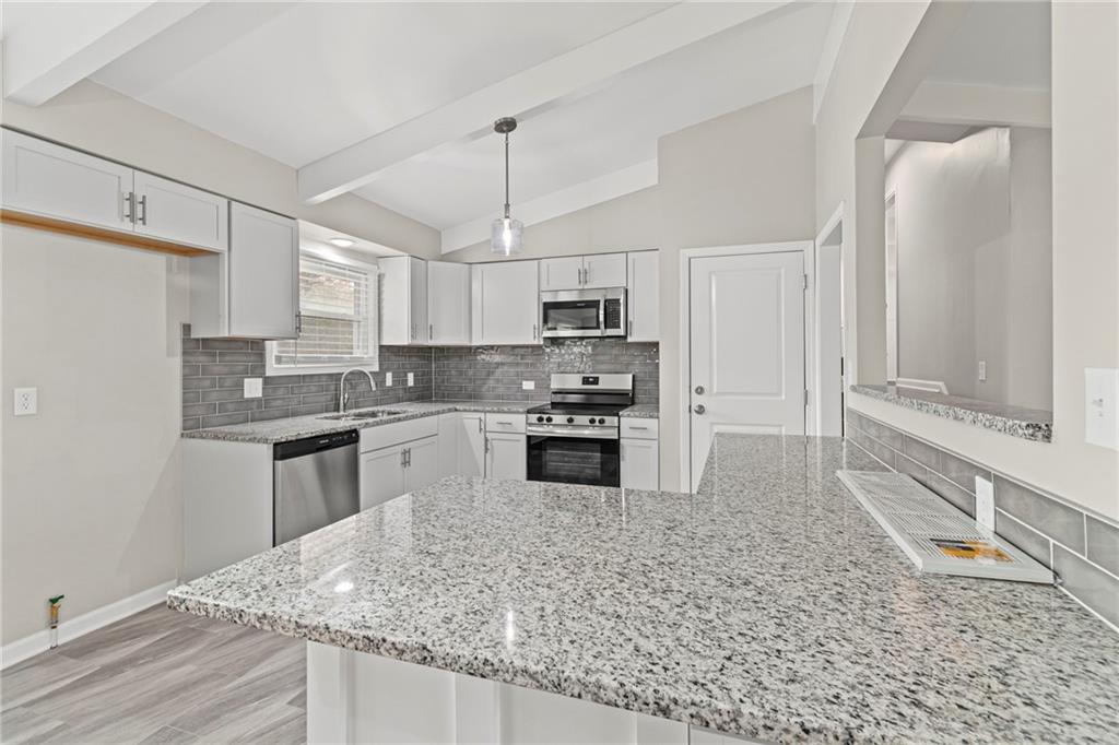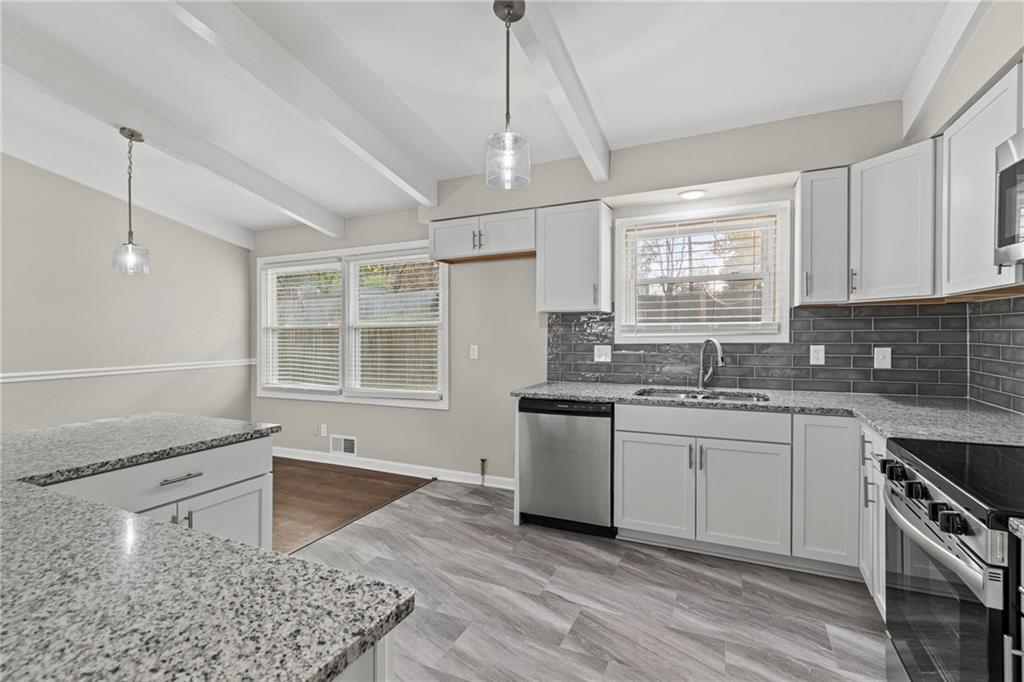 **1% BUY DOWN AVAILABLE AT NO COST CALL LISTING AGENT FOR MORE DETAILS** MOVE IN READY! Total remodel! Fresh paint in and out. You’ll love the warmth of hardwood floors and the character of wood-beamed vaulted ceilings. The updated kitchen features timeless white cabinetry, granite countertops, a modern tile backsplash and new stainless-steel appliances. BONUS room off dinning room that could be 4th bedroom with new bathroom. Both bathrooms have been fully revamped for a fresh, modern feel. The finished basement expands your living space with a large recreation room that’s perfect for guests, kids, or movie nights. 6′ privacy fence in large back yard. Great Gladstone location. Walk to school, park w/playground, basketball & tennis.