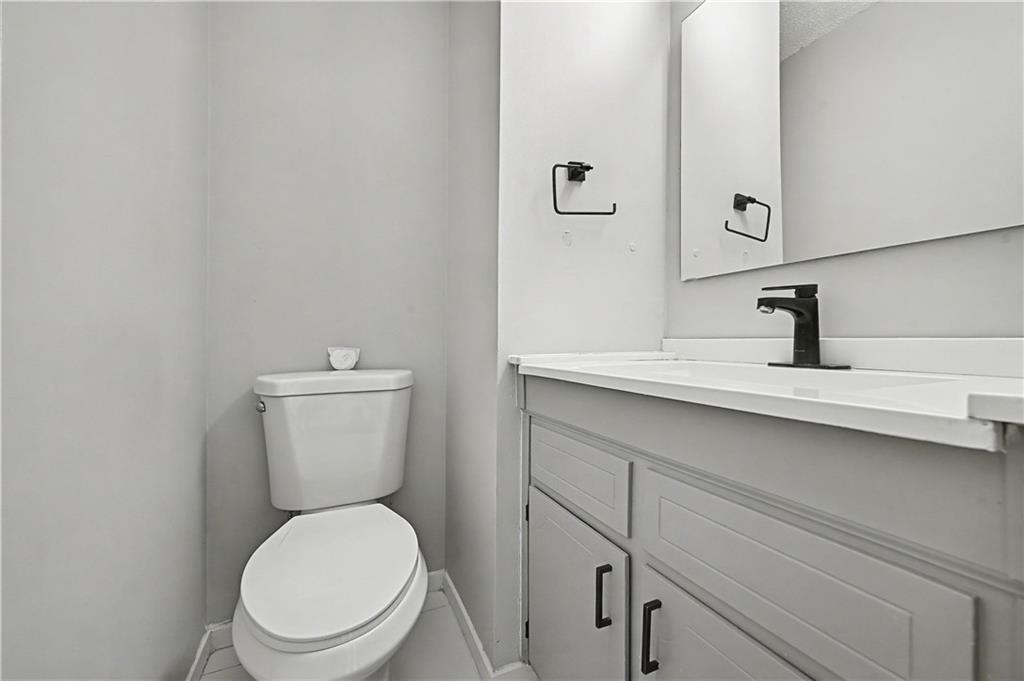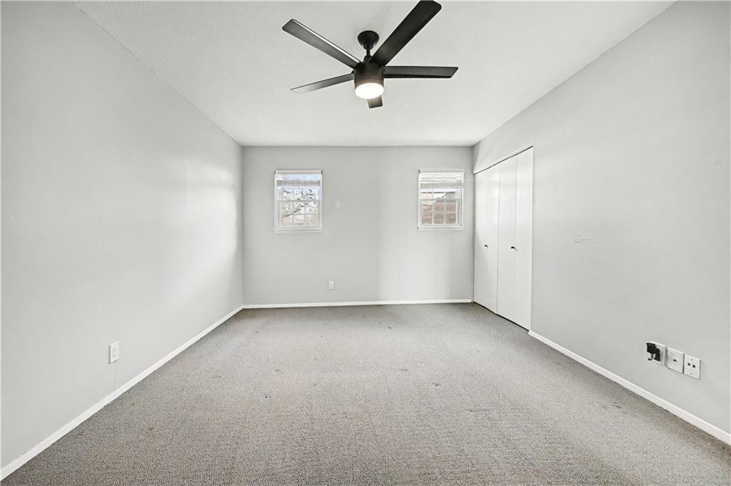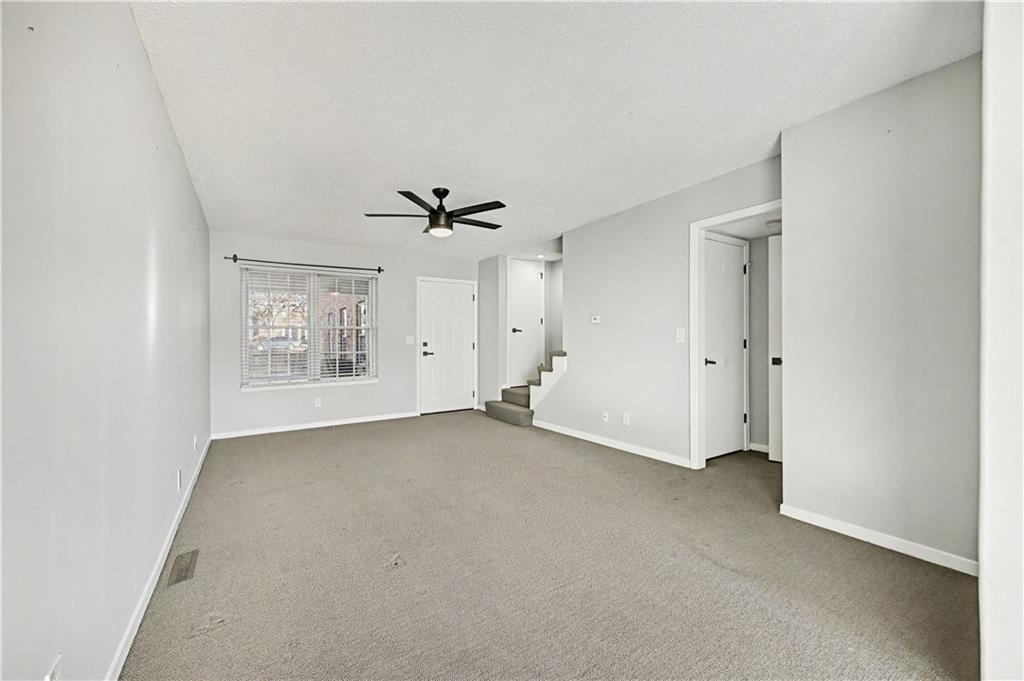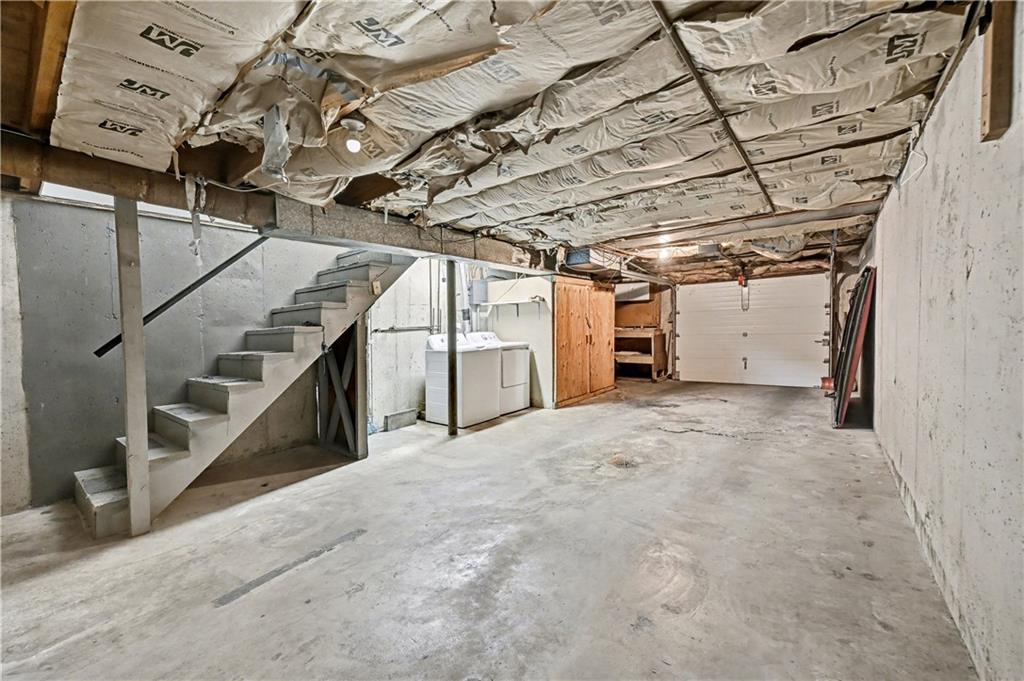 Upstairs, find two carpeted bedrooms complete with ceiling fans for added comfort. A full bath serves this level, while a convenient half bath is on the main floor. The basement has in-unit laundry and accesses the attached 2-car garage.