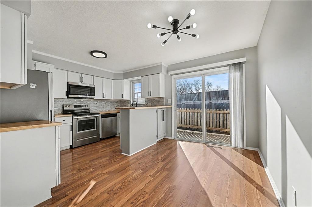 Discover low-maintenance living with this Meadowbrook Manor Townhome! This updated 2-bedroom, 1.5-bath townhome offers a great opportunity for those looking for that lock-and-leave lifestyle. The main level features a stylish kitchen equipped with stainless steel appliances and beautiful butcherblock countertops. Enjoy meals in the eat-in kitchen, which opens to a private deck for outdoor relaxation.