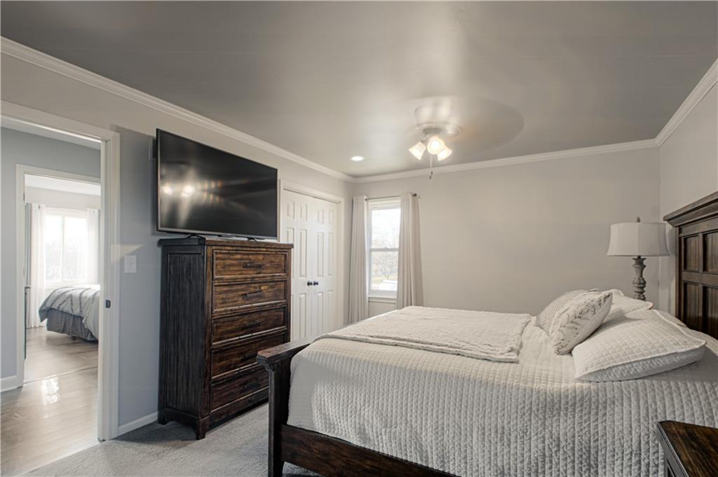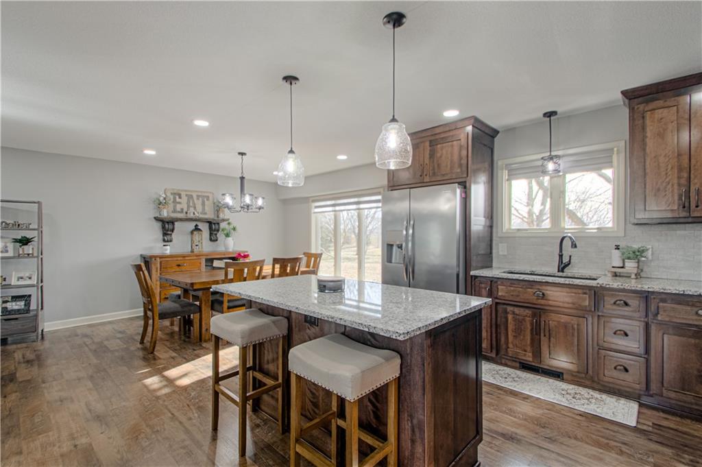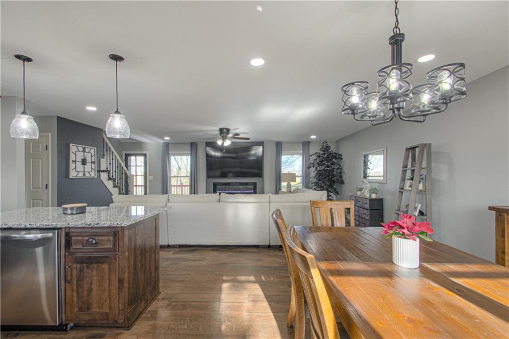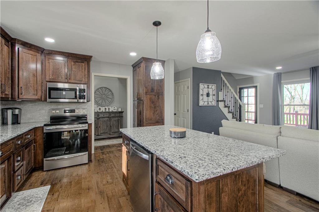 This home is impeccable! The owners have taken great care of it, remodeling the great room and kitchen with new cabinets, flooring, appliances, and an electric fireplace. The majority of the windows are newer, and the home has fresh paint and beautiful landscaping. The property itself is stunning, featuring an impressive two-level barn that measures 28×32 feet, surrounded by views of pecan, walnut, apple and oak trees. You can relax on the newly treated deck and enjoy watching the wildlife. The roof and heat pump are both under 10 years old. The side-entry garage is spacious, with one stall measuring 32 feet wide by 27 feet deep, and a second stall that is 24 feet deep. Dogwood Elementary and Kearney High School serve the home. Additionally, it’s conveniently located near the Kearney Jesse James Fairground. Please note that the square footage, taxes, and other information should be verified by the buyer’s agent.